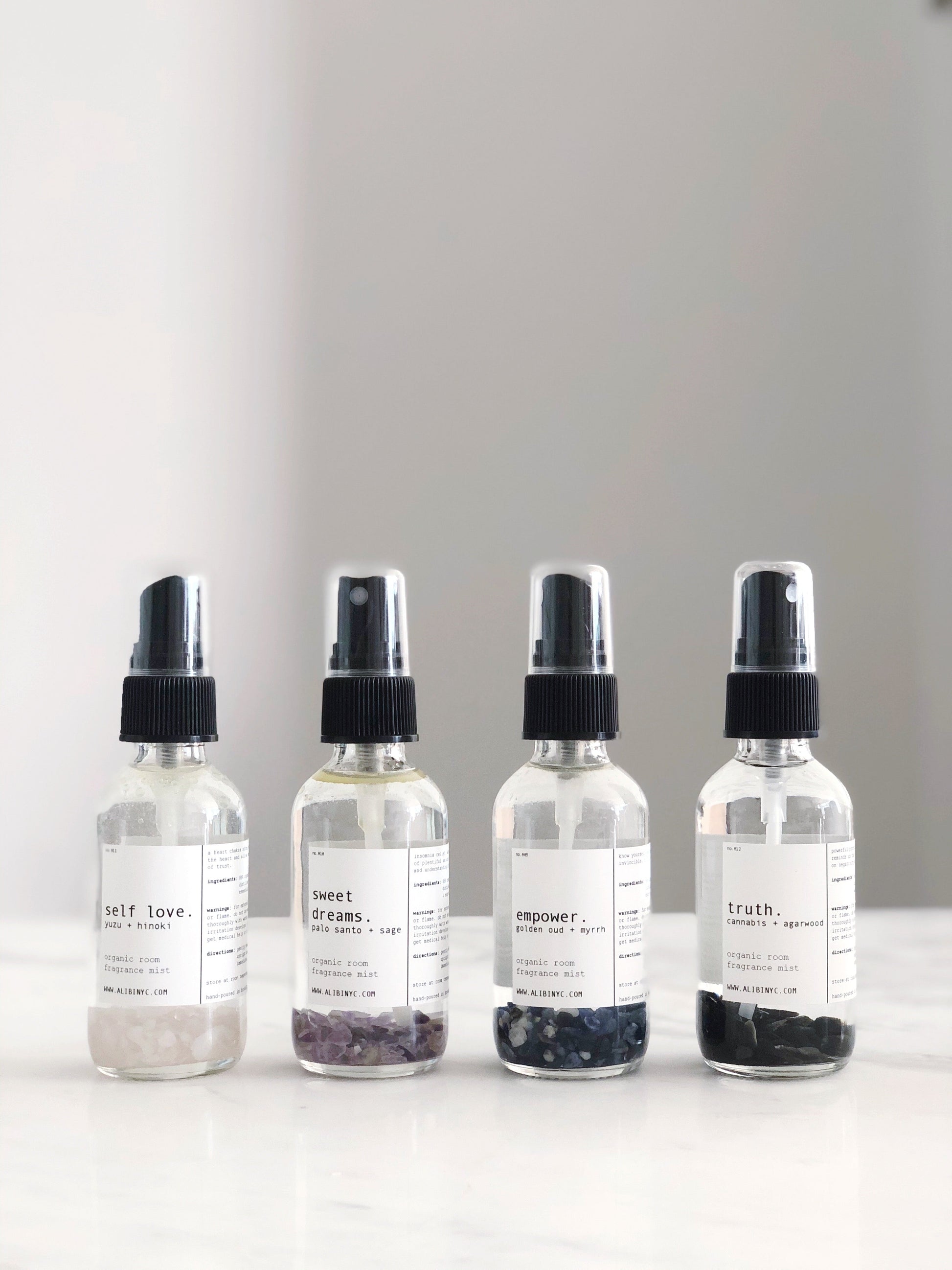 ingredients: 86% organic witch hazel extract, 14% alcohol, distilled water, natural obsidian, Cannabis + Agarwood essential oil blend