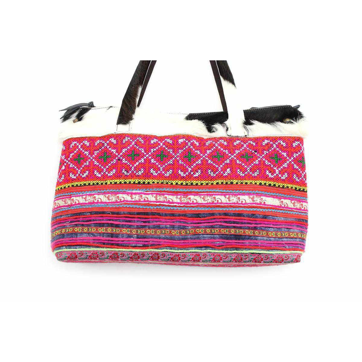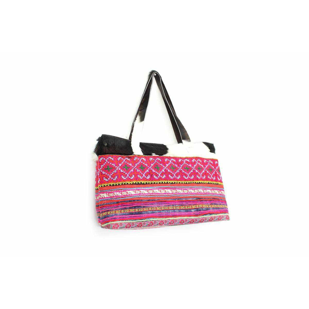 Upcycled Hmong Textile Cowhide One-of-a-kind Leather Tote Purse - Thailand
