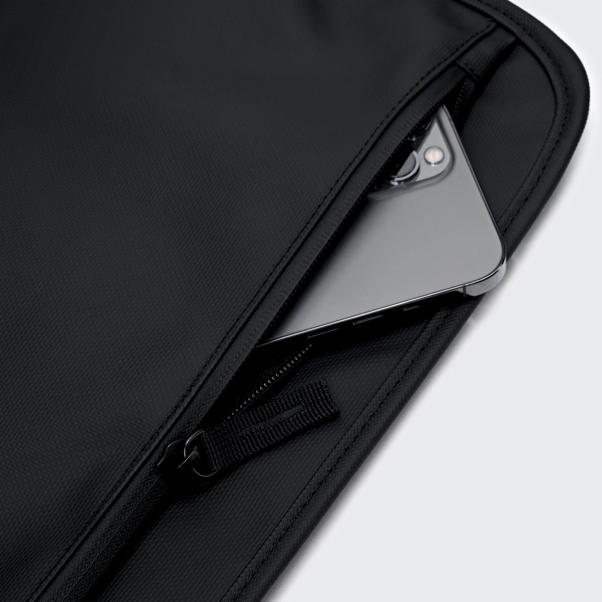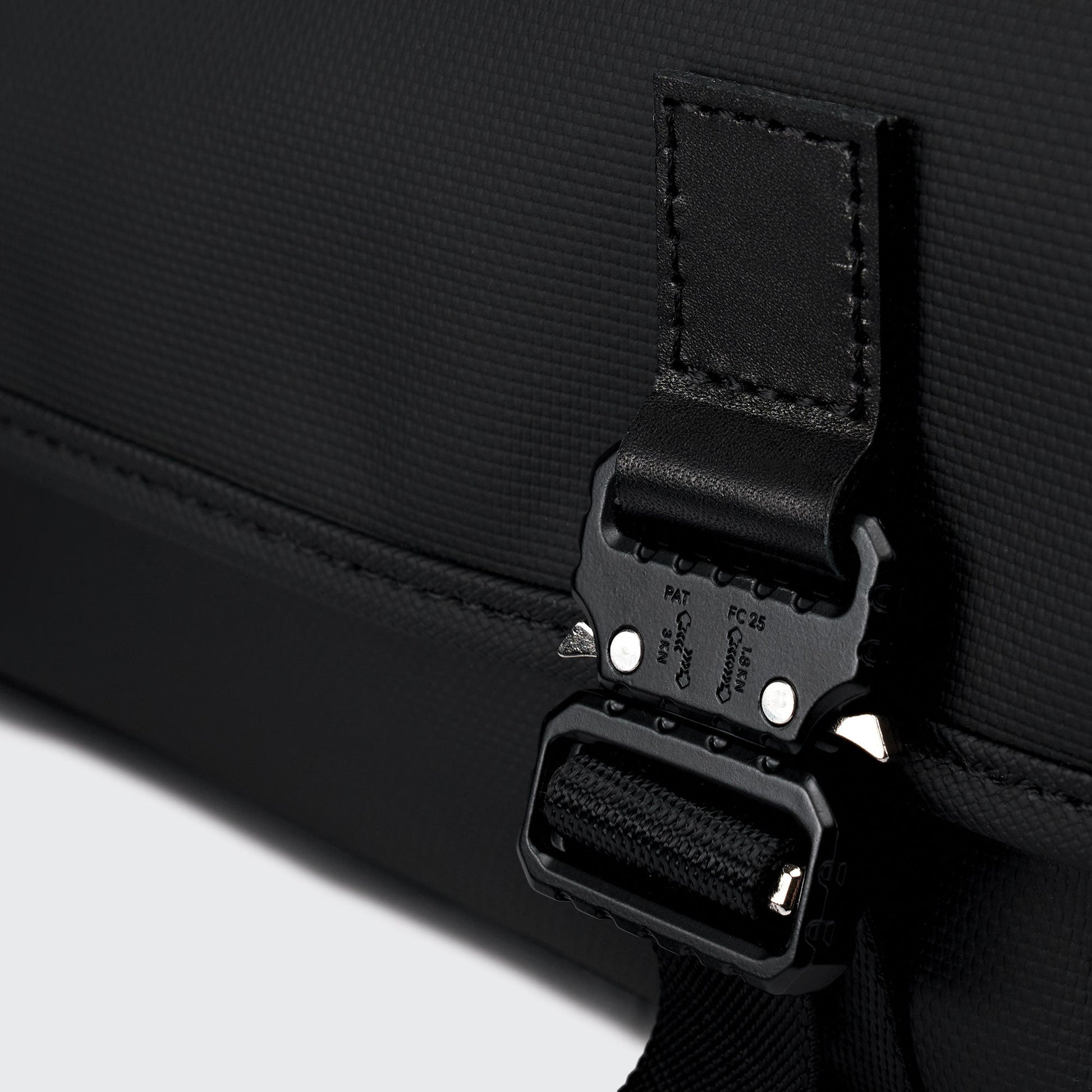 This sleek technical messenger is made with recycled hyperlight+ fabric and high-quality vegan leather details.