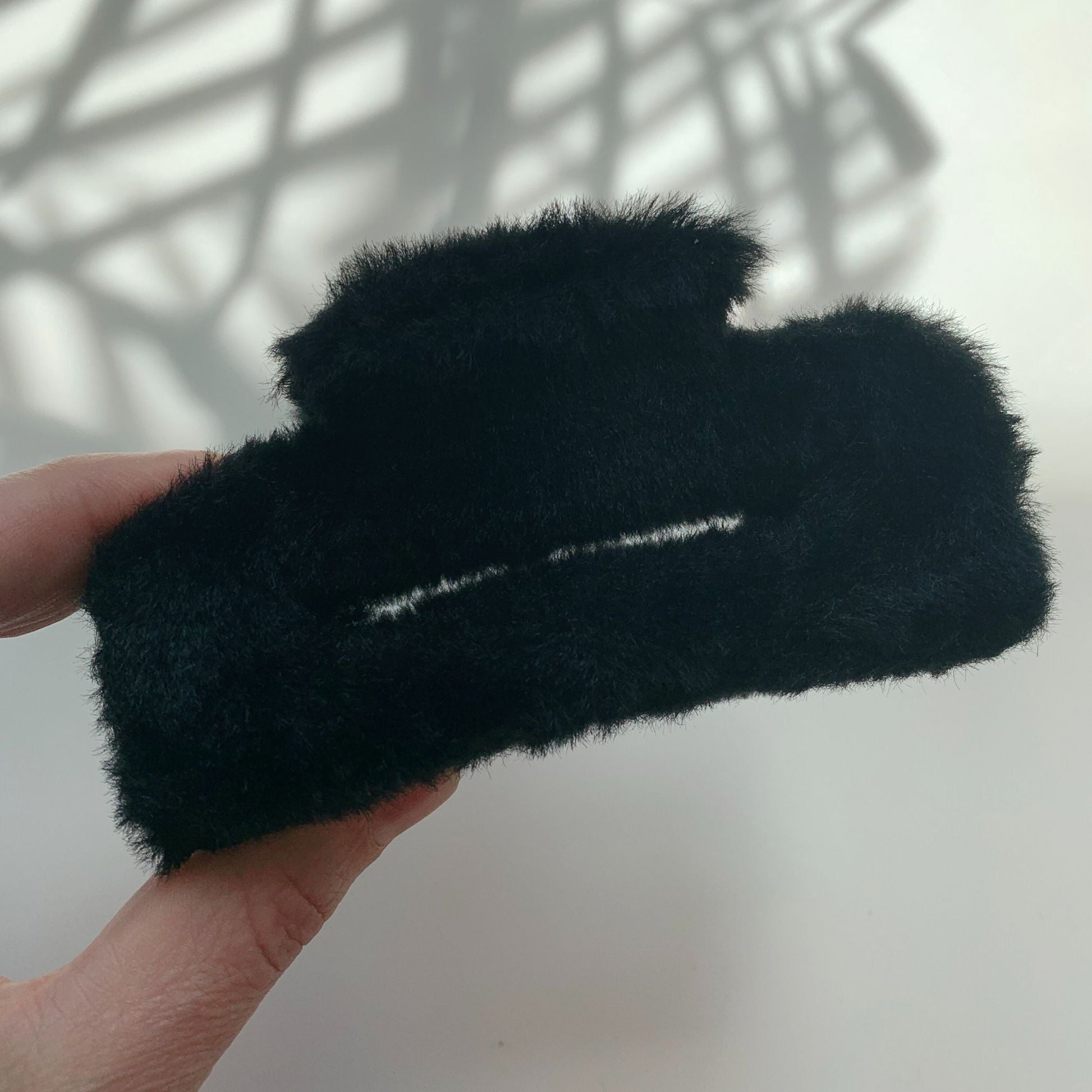 Velvet Claws Hair Clip | Rectangle Plush in Faux Fur Black | Claw Clip in Velvet Travel Bag