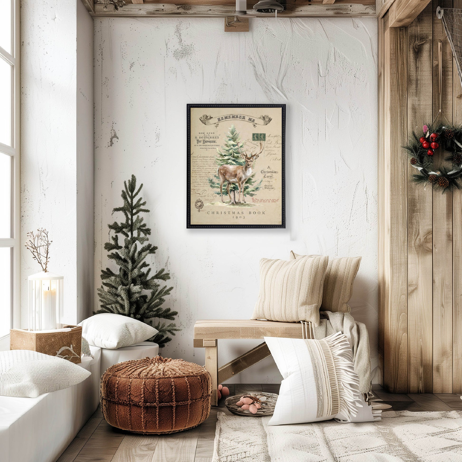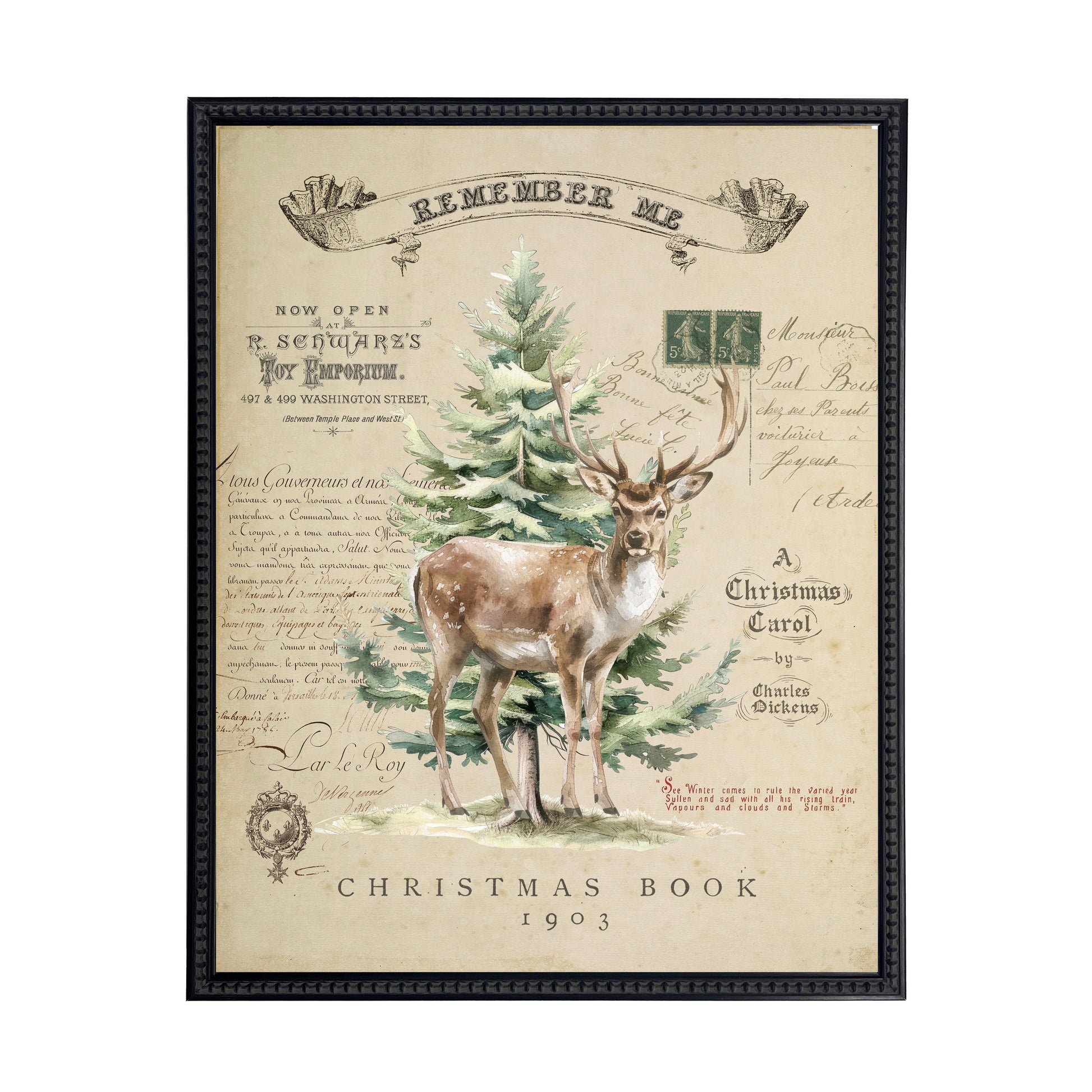 Vintage Painting of a Deer and Tree on a distressed bookplate background