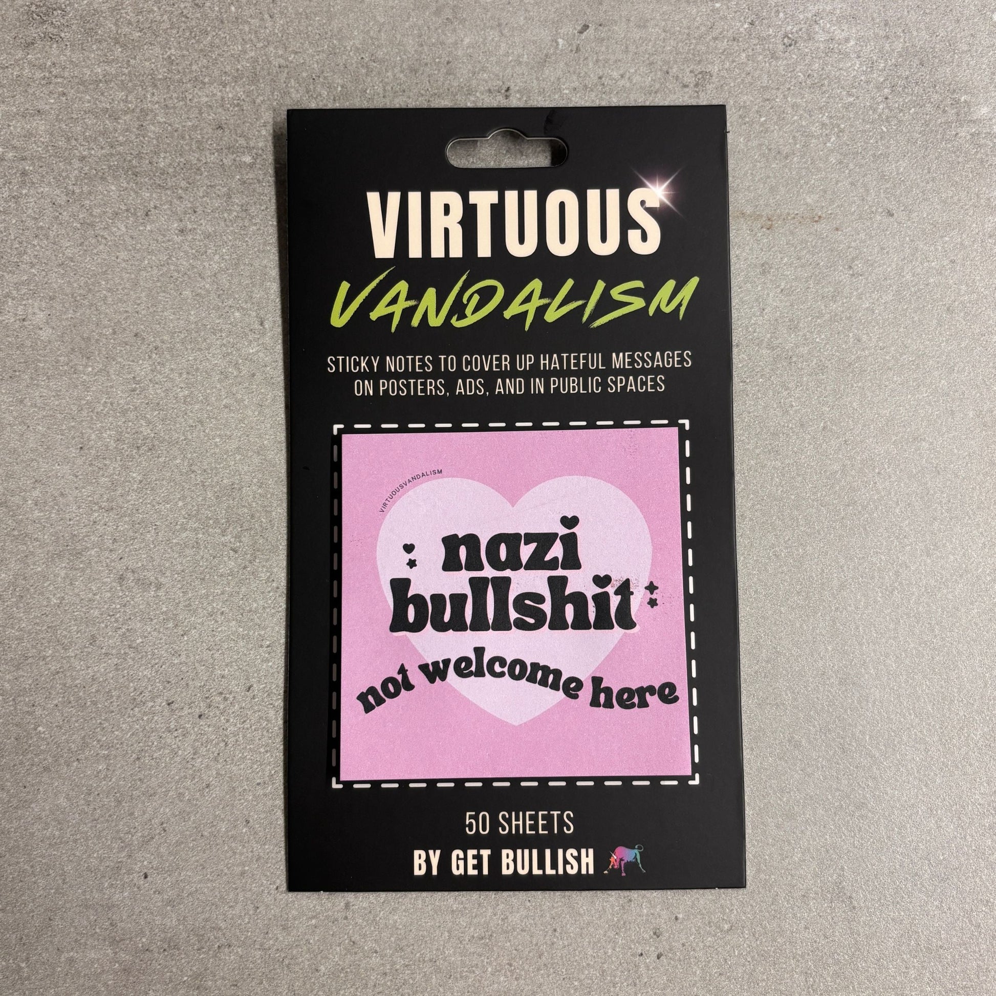 Virtuous Vandalism “Nazi Bullshit Not Welcome Here” Sticky Notes 3" x 3" Pack of 50 | Combat and Cover Offensive Public Messages with Adhesive Protest Notes