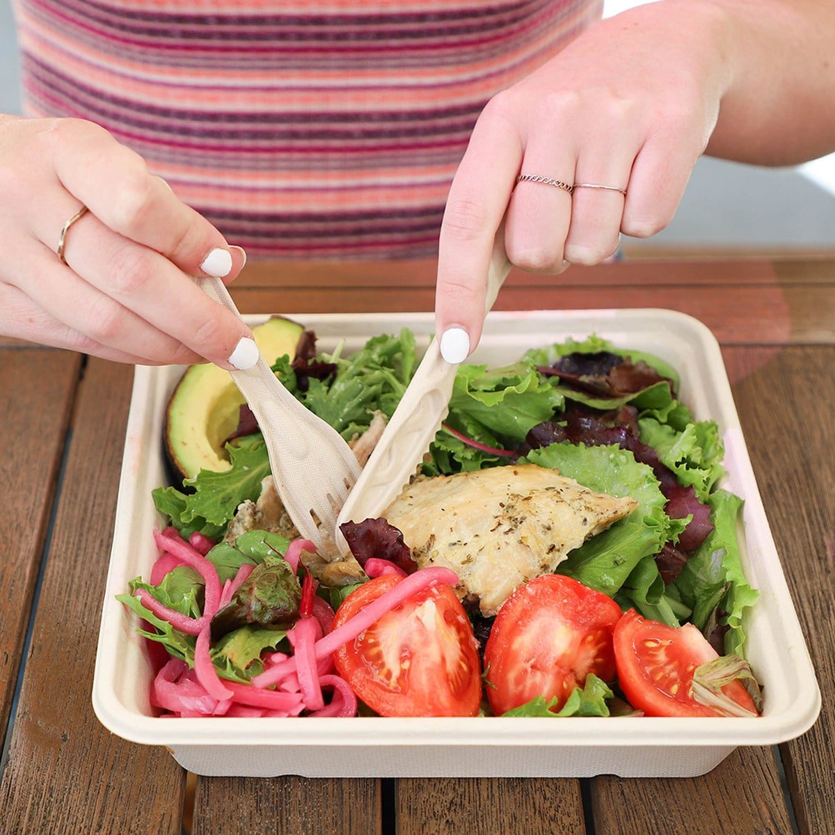 World Centric® 6 inch wrapped fiber forks are made from unbleached plant fiber, an annually renewable resource, and contain no added PFAS. Lightweight and durable, these disposable utensils are perfect for groceries, supermarkets and restaurants that serve takeout. They are certified compostable in a commercial compost facility, which may not exist in your area, and the wrapper is a naturally compostable unlined paper. By using utensils made from plant fiber, you are reducing plastic waste and taking action to make a difference.