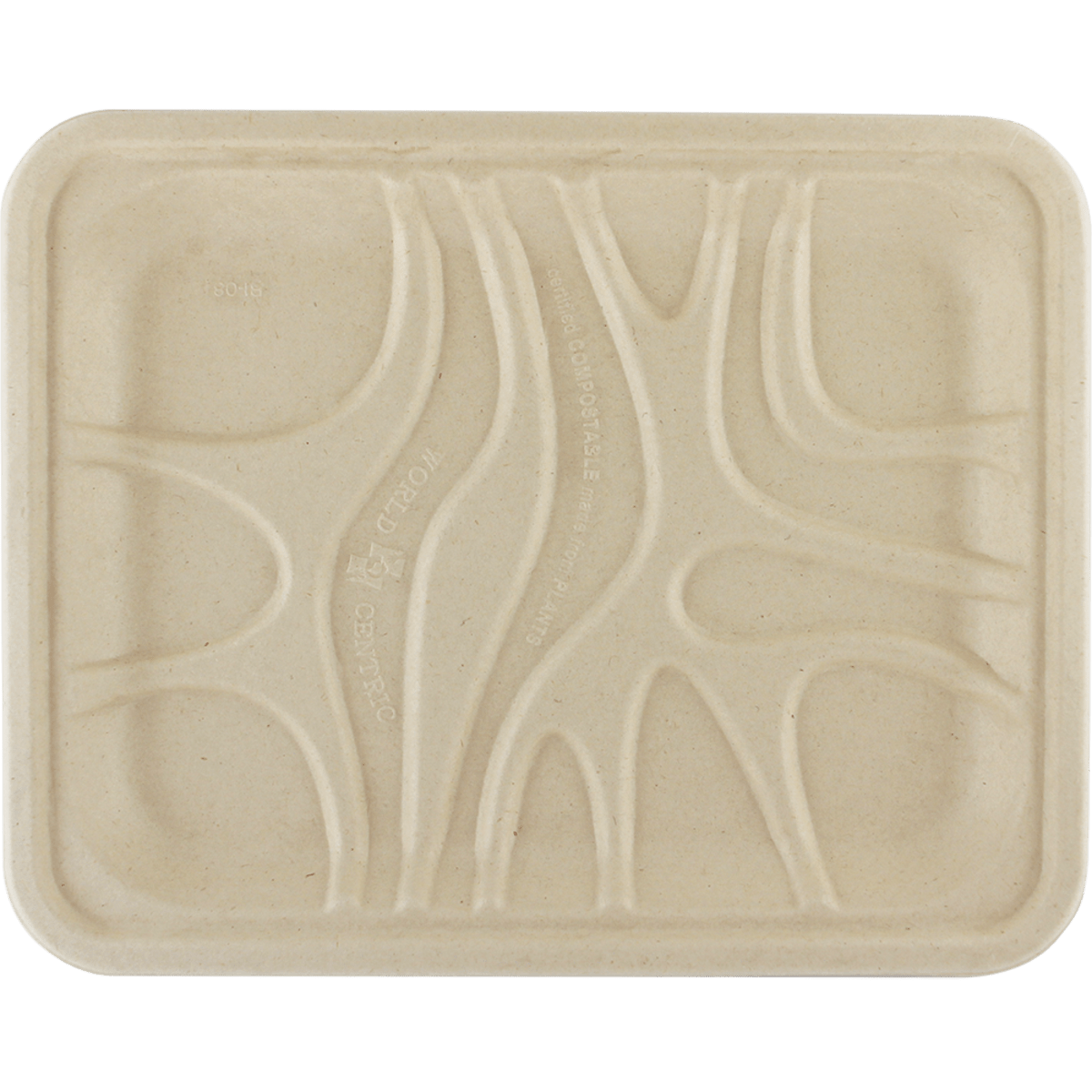 Also available as a pack of 50, SKU: TR-SC-4S-P. World Centric® 9.125x7.125x.65” fiber Meat & Produce trays are made from bamboo and unbleached plant fiber, an annually renewable resource, and contain no added PFAS. Great for delis, grocery stores, and supermarkets, these trays are compostable, durable, grease and moisture resistant, freezer safe, and have no wax or plastic lining. They are certified compostable in a commercial facility, which may not exist in your area.