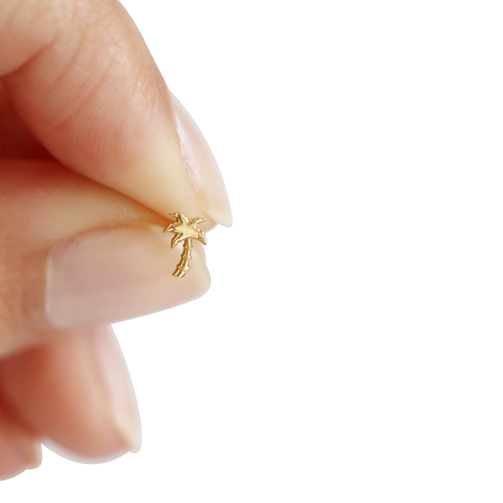 ✨Our studs are made to order and will be shipped in 1-2 weeks✨ Forever on island time. This 14k gold palm brings laid-back energy to any look. Solid 14K Yellow Gold: durable for everyday wear & lasts forever Handmade in the USA: each piece is a tiny work of art made just for you by our team in Los Angeles. Butterfly-post or screw-in flat-back options: choose what works best for you! Learn more about our earring backs here. Sold individually: aka as a single stud so you can mix and match! We love wearing these studs in our 2nd, 3rd, etc. piercings. Dimensions: 6mm H x 4mm W