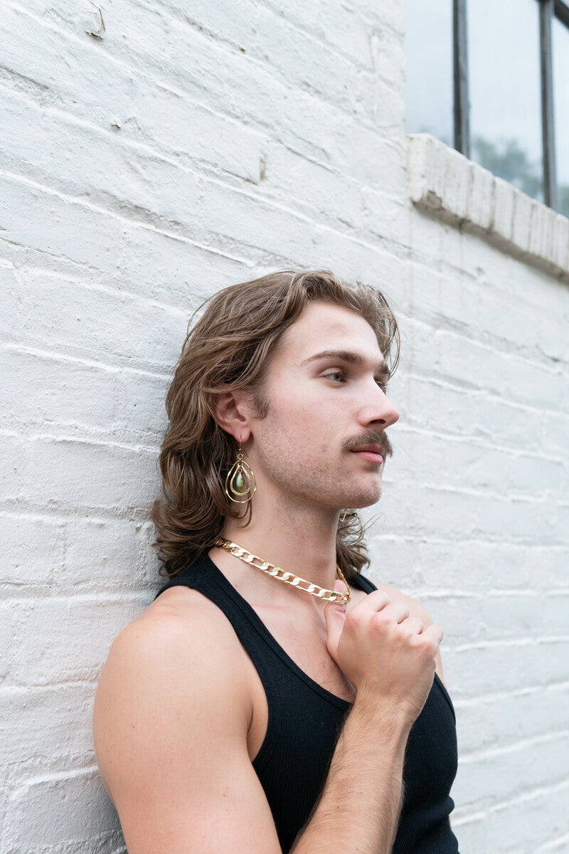 Our Adela Dangle Earrings are ethically-made in Chile from brass and green chalcedony. These earrings are completely handmade and super high quality. Measure about 2".