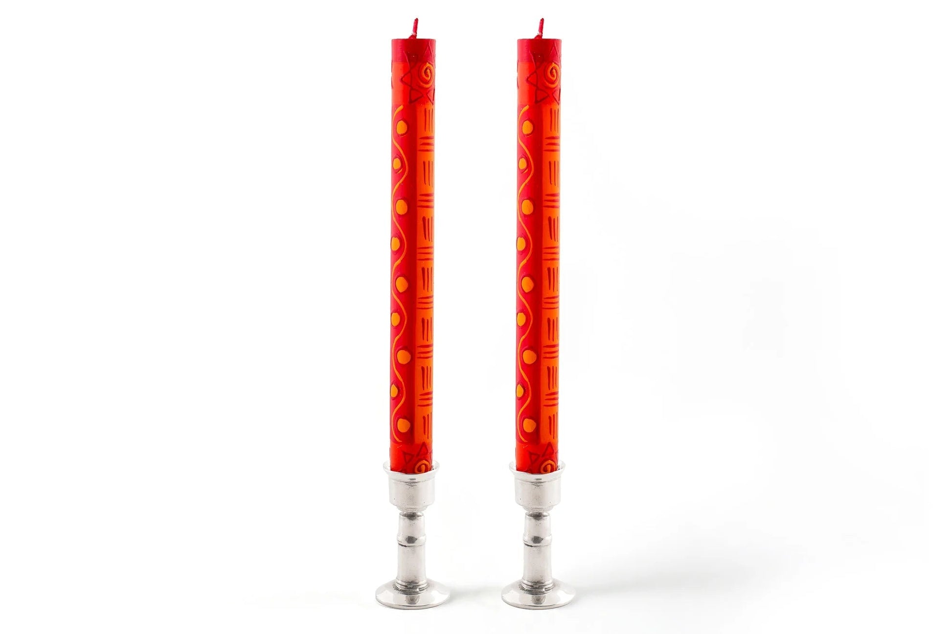 END OF LINE SALE! The sunsets in Africa are amongst the most beautiful in the world! *Lovingly hand poured and hand painted in South Africa. *Crafted primarily by single mothers from the local rural community. *On average, each artisan supports an extended family of 12-15 people. PRODUCT DESCRIPTION: *Highest quality natural paraffin wax with 100% cotton wick *Unscented, smokeless, and free from added toxins *Tapers packaged as a matched pair *Each candle is uniquely made. Your delivered candle will likely appear slightly different from the website photo, but consistent with the theme of the collection. CANDLE CARE: *First burn time: 1-hour for every inch diameter *Wicks should always be cut to ¼” prior to lighting *Avoid drafts – they cause dripping! *Ensure candles are extinguished prior to leaving the room Learn more about the artisan hands that make these fair-trade products!