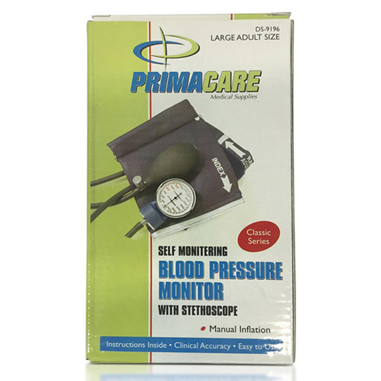 DS9196 Professional Classic Series Large Adult Size Manual Blood Pressure Kit Long Lasting Latex Inflation System with DRing Cuff and Stethoscope Navy Description Primacare DS-9196 Professional Classic Series Large Adult Size Manual Blood Pressure Kit, Long Lasting Latex Inflation System with D-Ring Cuff and Stethoscope, Navy. Details. OPC PBKR55S Brand PrimaCare Codes 0189365000969 (EAN) Rank #15 Diagnostics & Health Monitor Accessories #298 Health Monitors #942 Home Medical Supplies & Equipment.