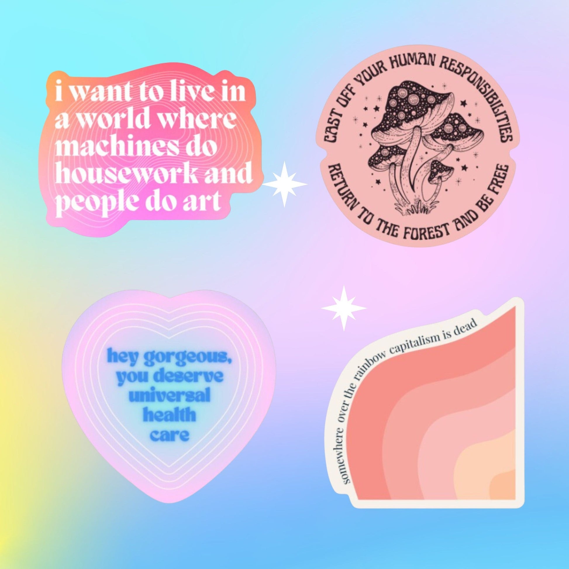 Anti-Capitalism Vinyl Sticker | Water Bottle Laptop Decals | 4 Pack