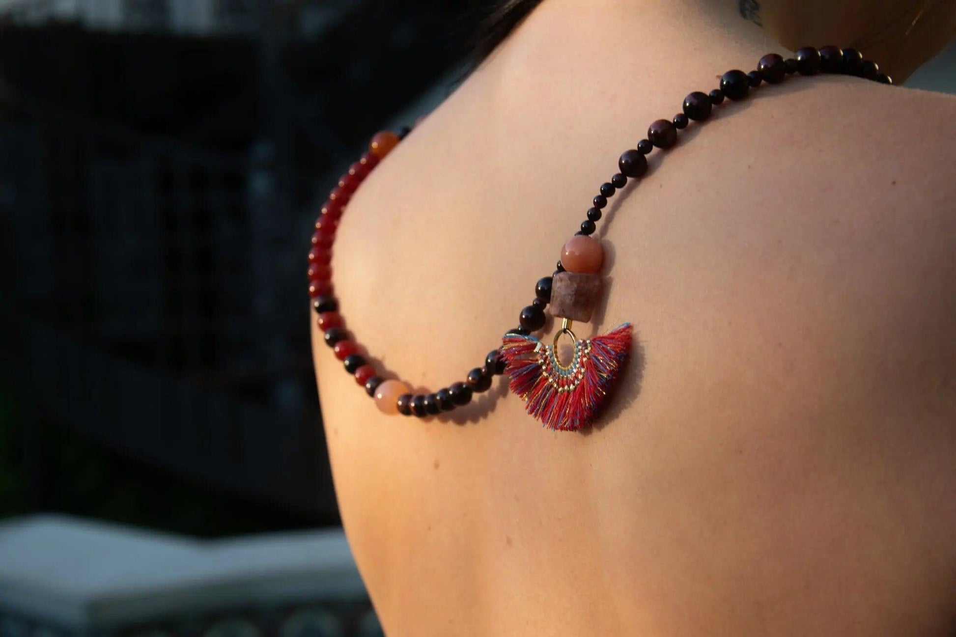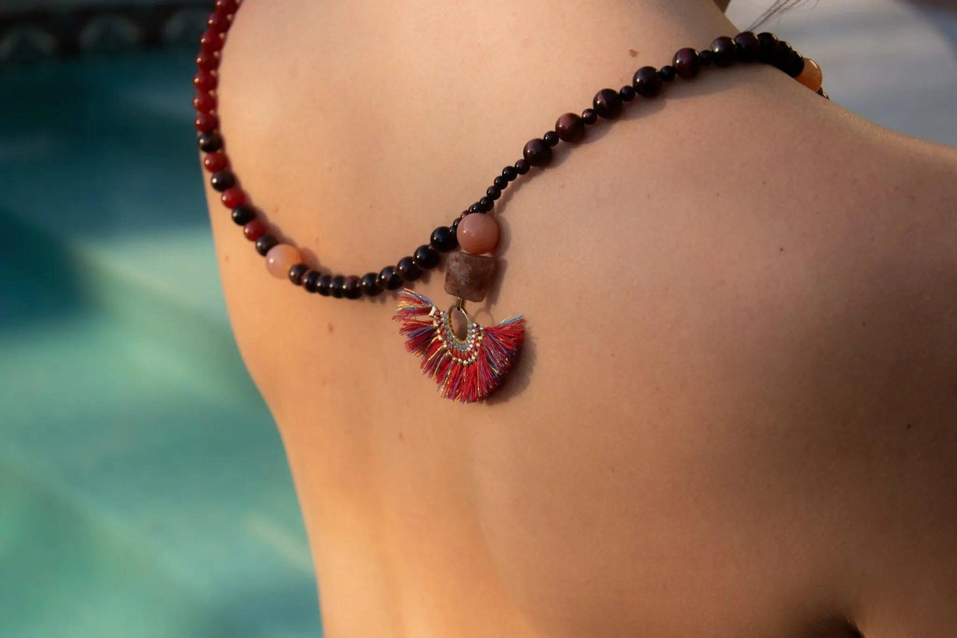Elevate Your Style with the Astral Mala Necklace – 108 ethically sourced gemstones represent individuality, creativity & intuition. Handcrafted in Austin, TX with eco-friendly materials, this necklace blends style and sustainability. Adorned with a glamorous pendant, it's perfect for meditation and versatile for any occasion. Join the conscious fashion movement with ethical jewelry and sustainable fashion from LOKA.HAUS.