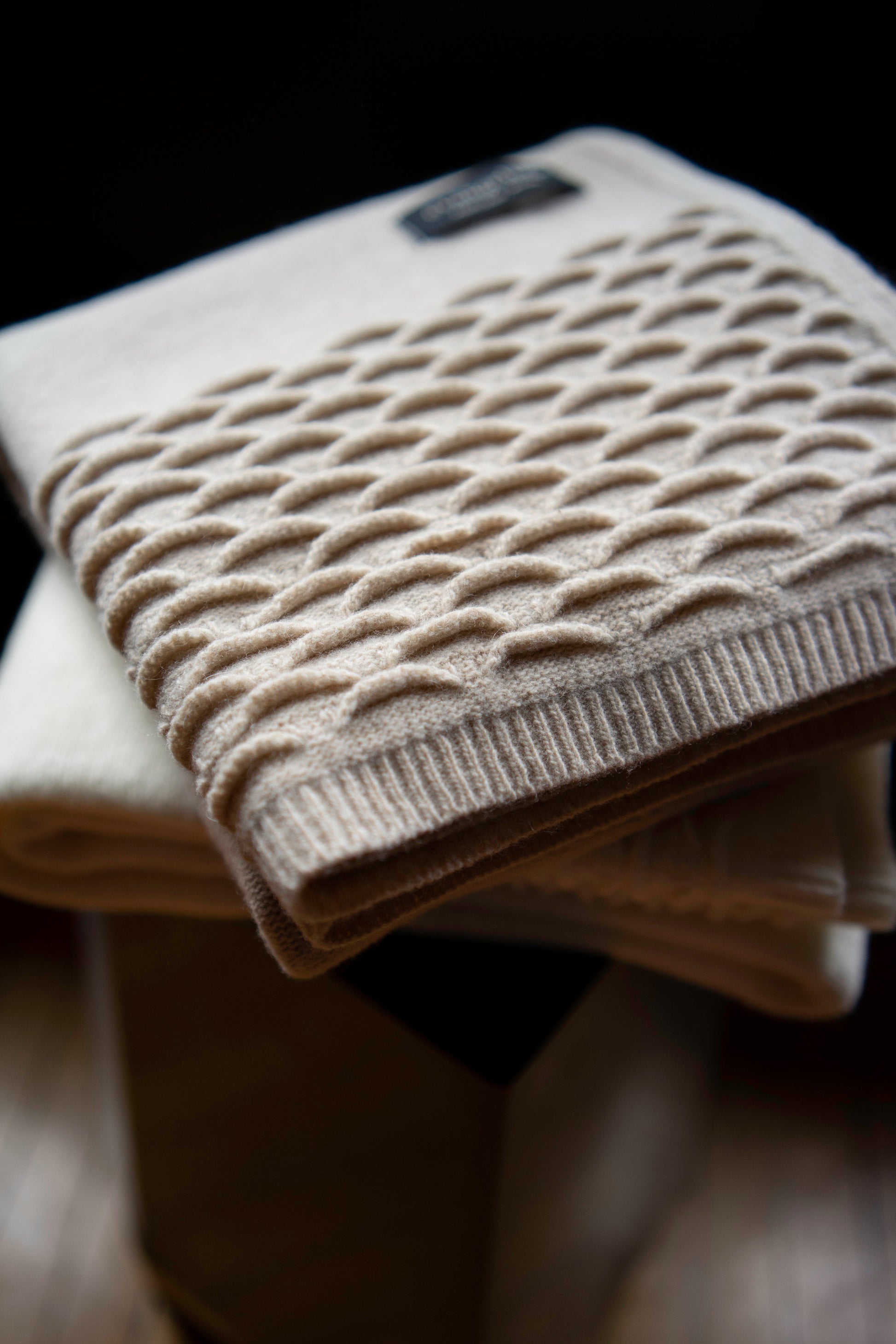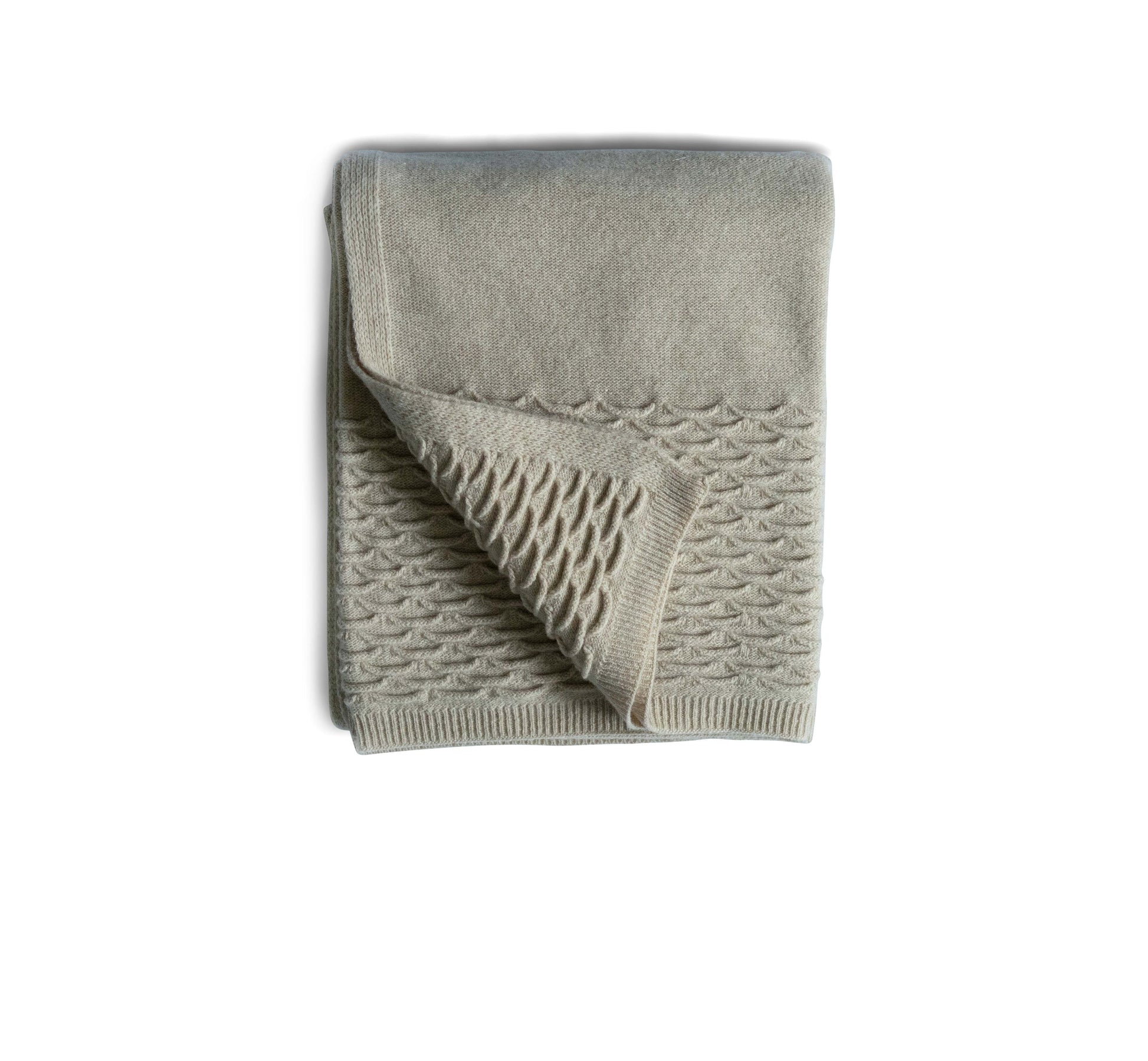 100% Soft Lambswool Stroller rides and tummy-time. Snuggled in at night. Super soft 'hand' of lambswool. Unique scallop texture. Woven to last. The baby blanket that makes hand-me-downs a good thing. Dimensions: 36"x44" Machine Wash Cold / Hang Dry Woven in Portugal