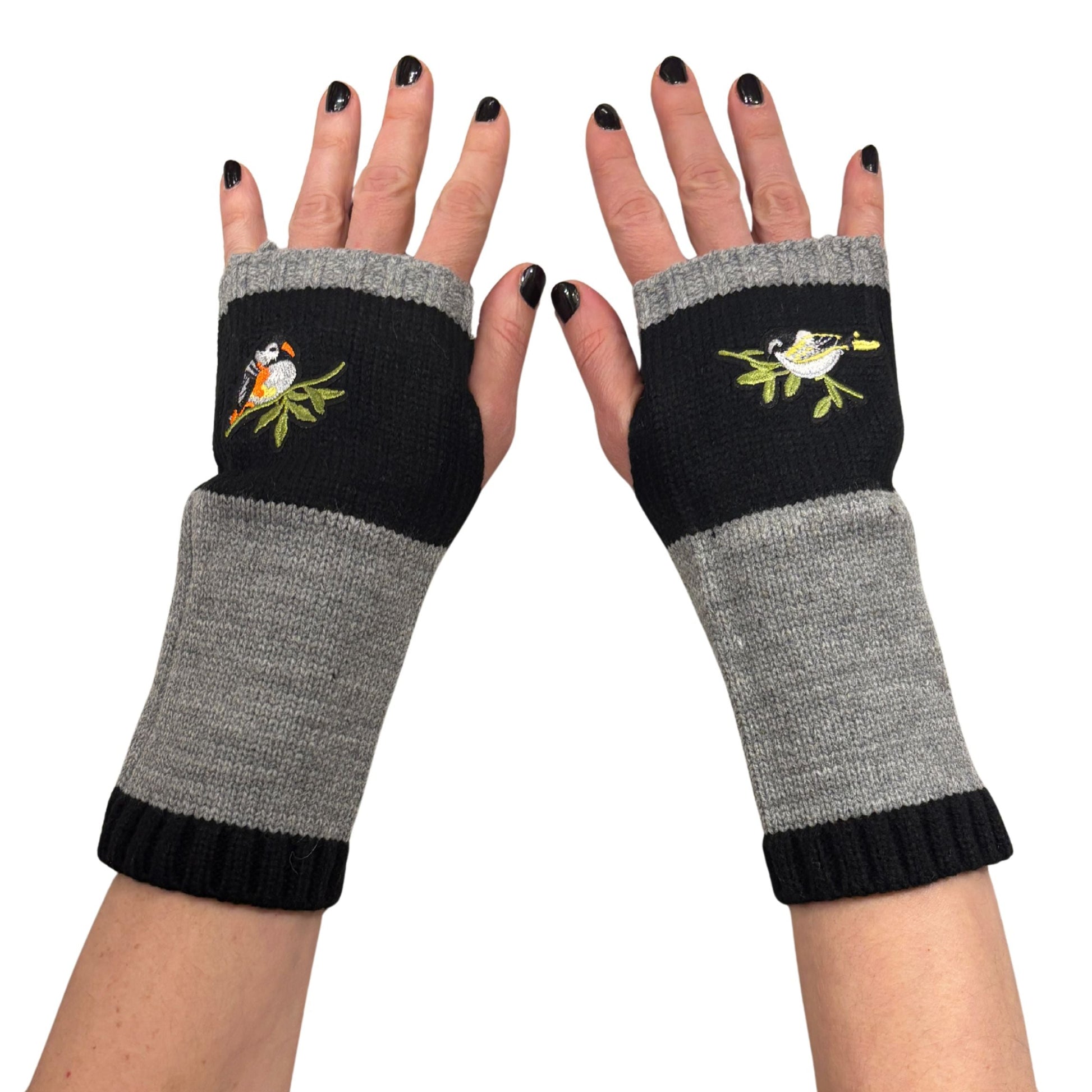 Bird Applique Arm Warmers | Fingerless Gloves in Black, Pink, or Green