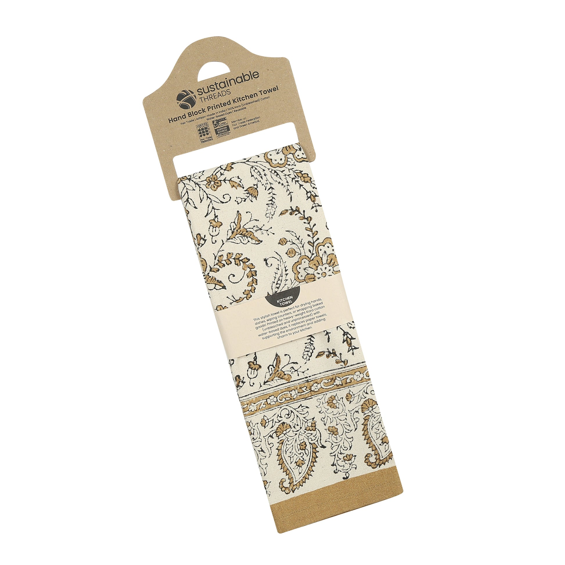 Bloom River - Set of 2. Hand Block Printed Kitchen Towels - Cotton - Fair Trade - Artisan Made