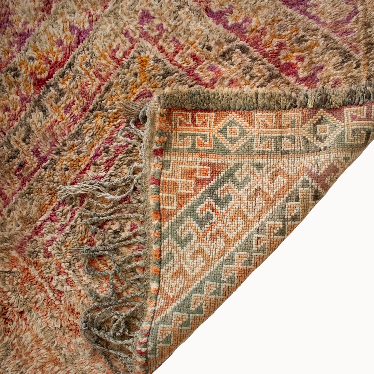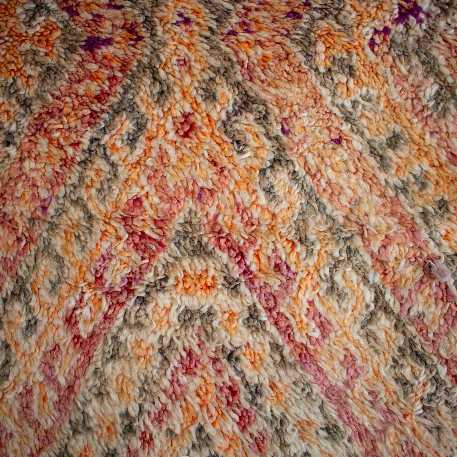 - Hand-knotted in the Atlas Mountains of Morocco using traditional Amazigh weaving techniques.