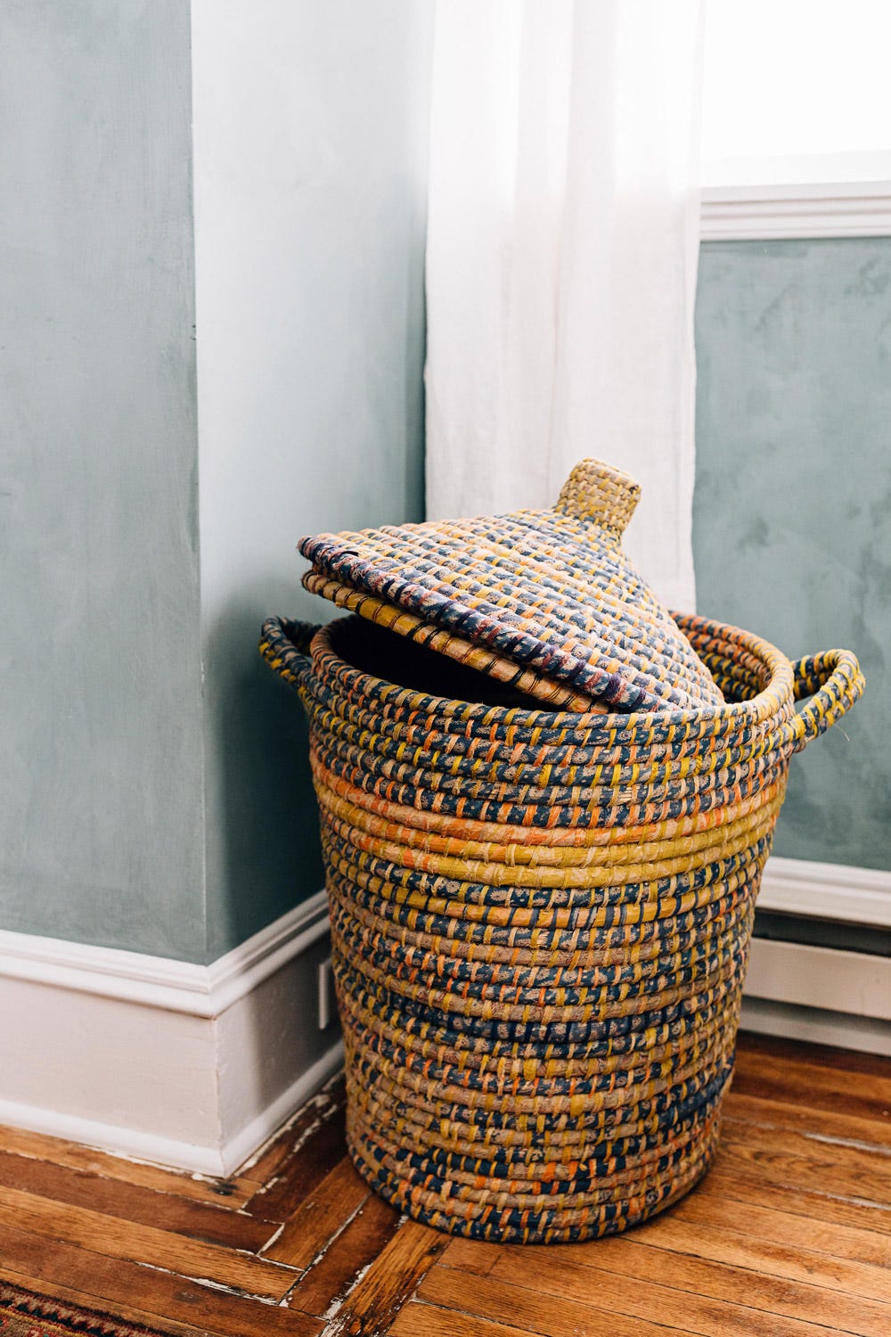Handwoven from fast-growing Kaisa grass, with pops of recycled sari, the Bright Day Hamper is a sustainably beautiful choice for laundry or kids' room storage.