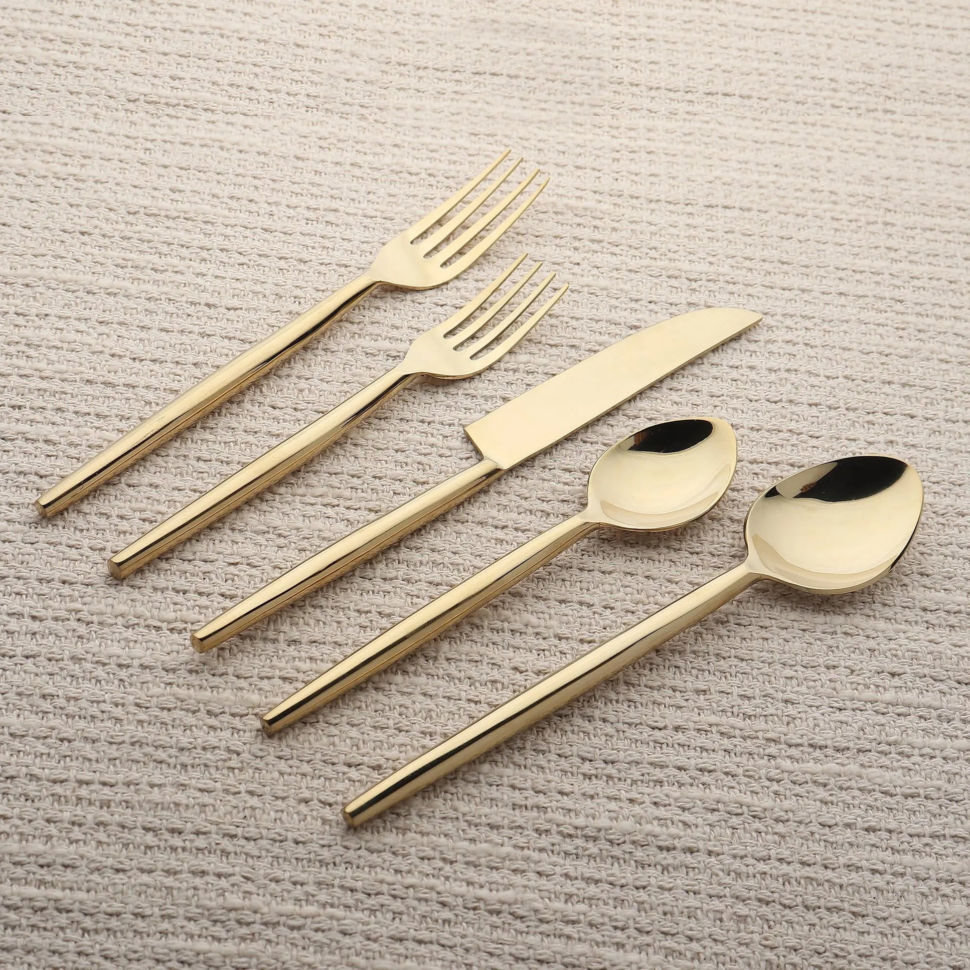 • Each flatware set includes a salad fork, dinner fork, table knife, soup spoon, and teaspoon