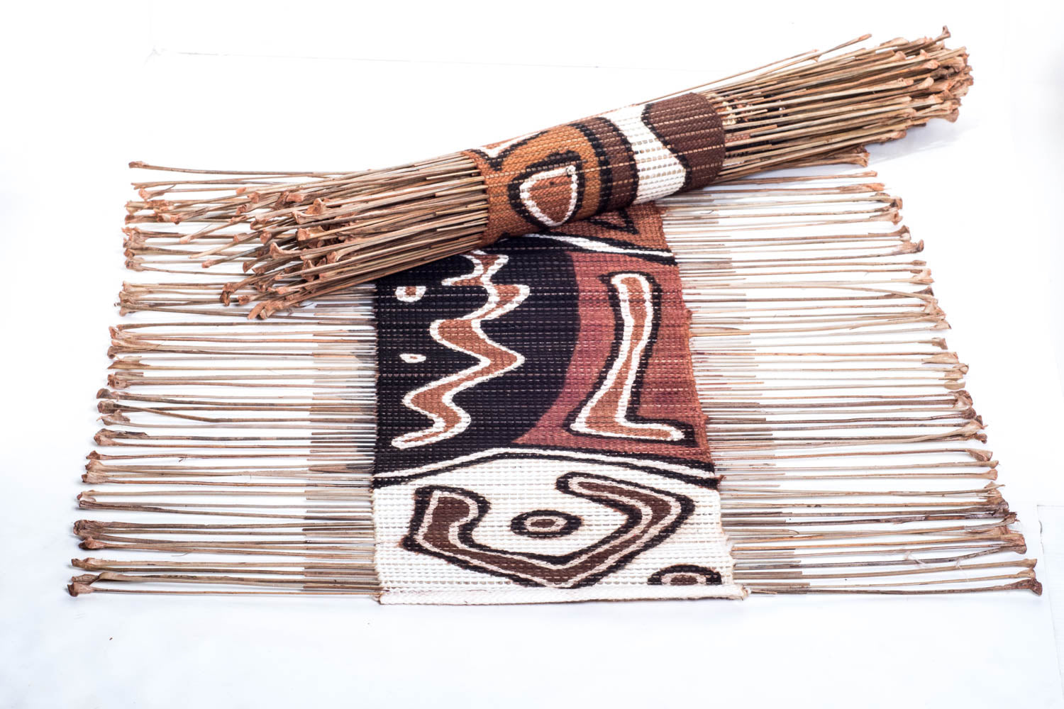 Taking the traditional broom fronds and weaving in cotton patterns, these broom runners make excellent table runners or wall hangings.