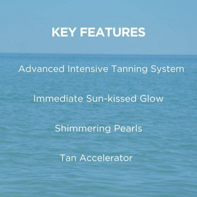 Antioxidant Complex: A powerful combination of Vitamin A and E for enhanced skin nourishment and protection. Shimmering Pearls Highlighting the tan with a beautiful glow under the sun.