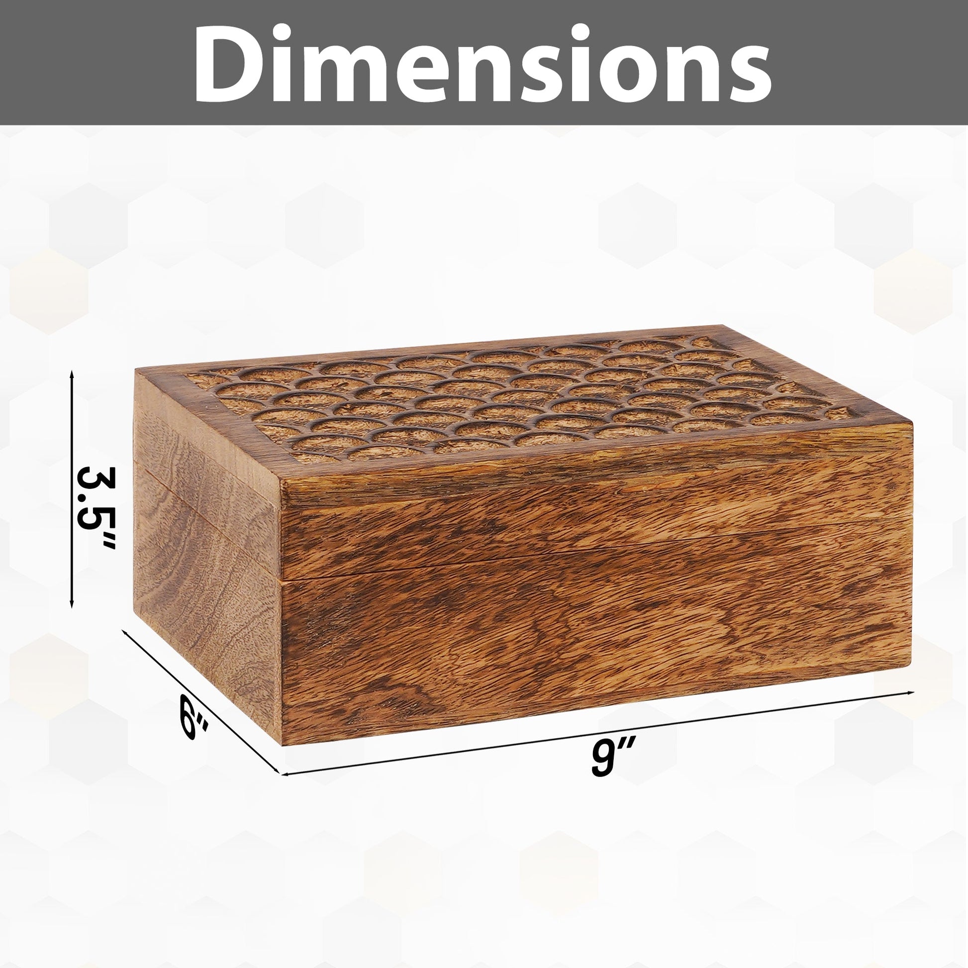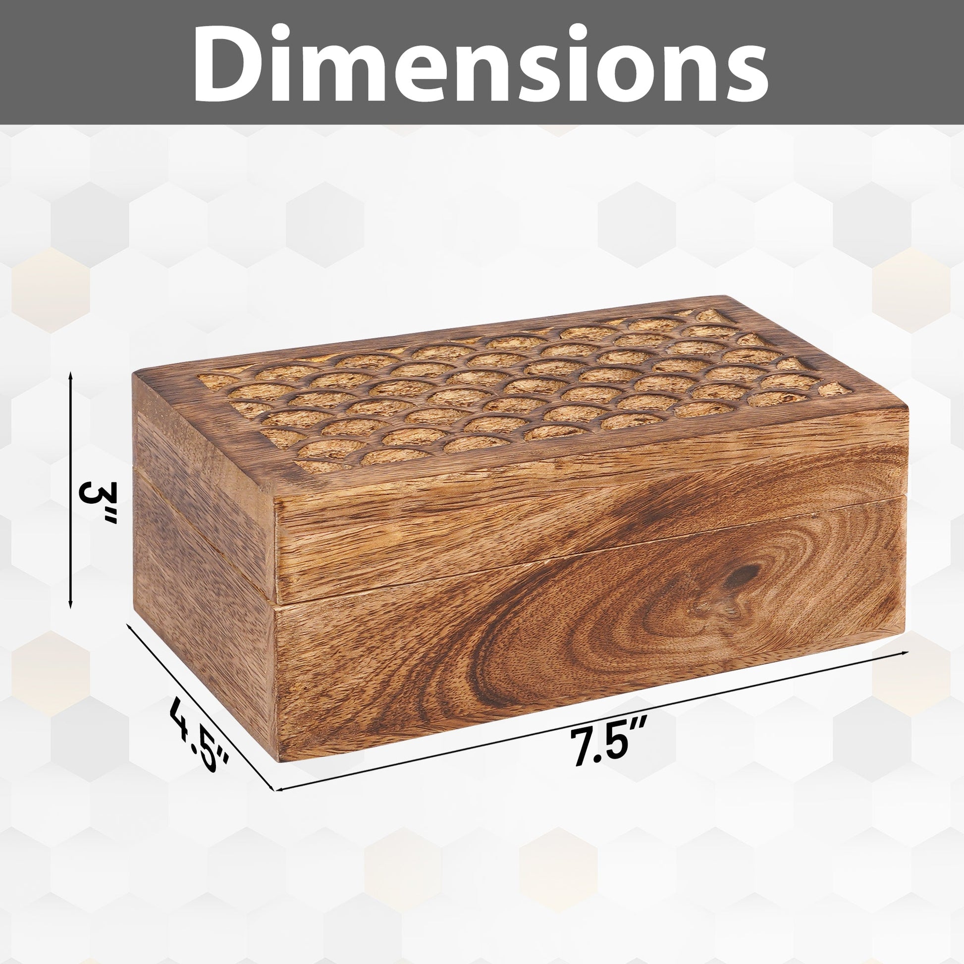 Our wood storage box adds sophistication to your room. We’ve built our home storage boxes to be strong, durable, and scratch-proof. These decorative boxes for home decor are handcrafted from natural Mango wood to ensure longevity and functionality, featuring a beautifully handmade flower design on the lid. The wooden jewelry box for women and men features quality craftsmanship from the creative hands of our Indian Artisans. The intricate hand carving on the lids of these wooden boxes for centerpieces adds a sophisticated charm to your living space. Our decorative wooden gift box is perfectly sized for your needs. The wooden box medium size is an easy and stylish way to organize and stash away your mail, keepsakes, jewelry, and assorted accessories! --- About Us: All Mela Artisans products support fair trade through an extensive program that preserves Indian craftsmanship and promotes the welfare of communities throughout the country. We are so confident in the quality of our products that we offer a no questions asked, money-back guarantee.