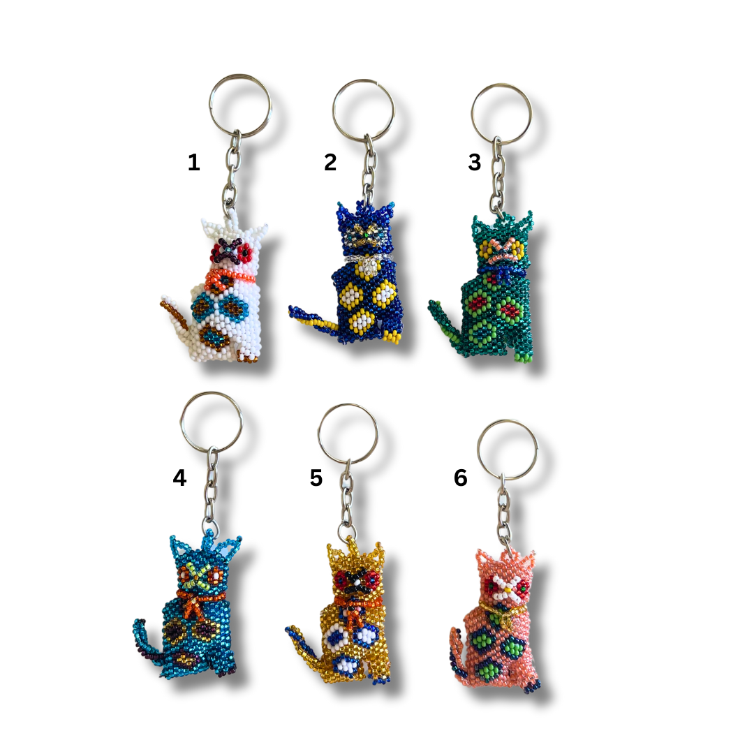 Cat Seed Bead Key Chain - Guatemala