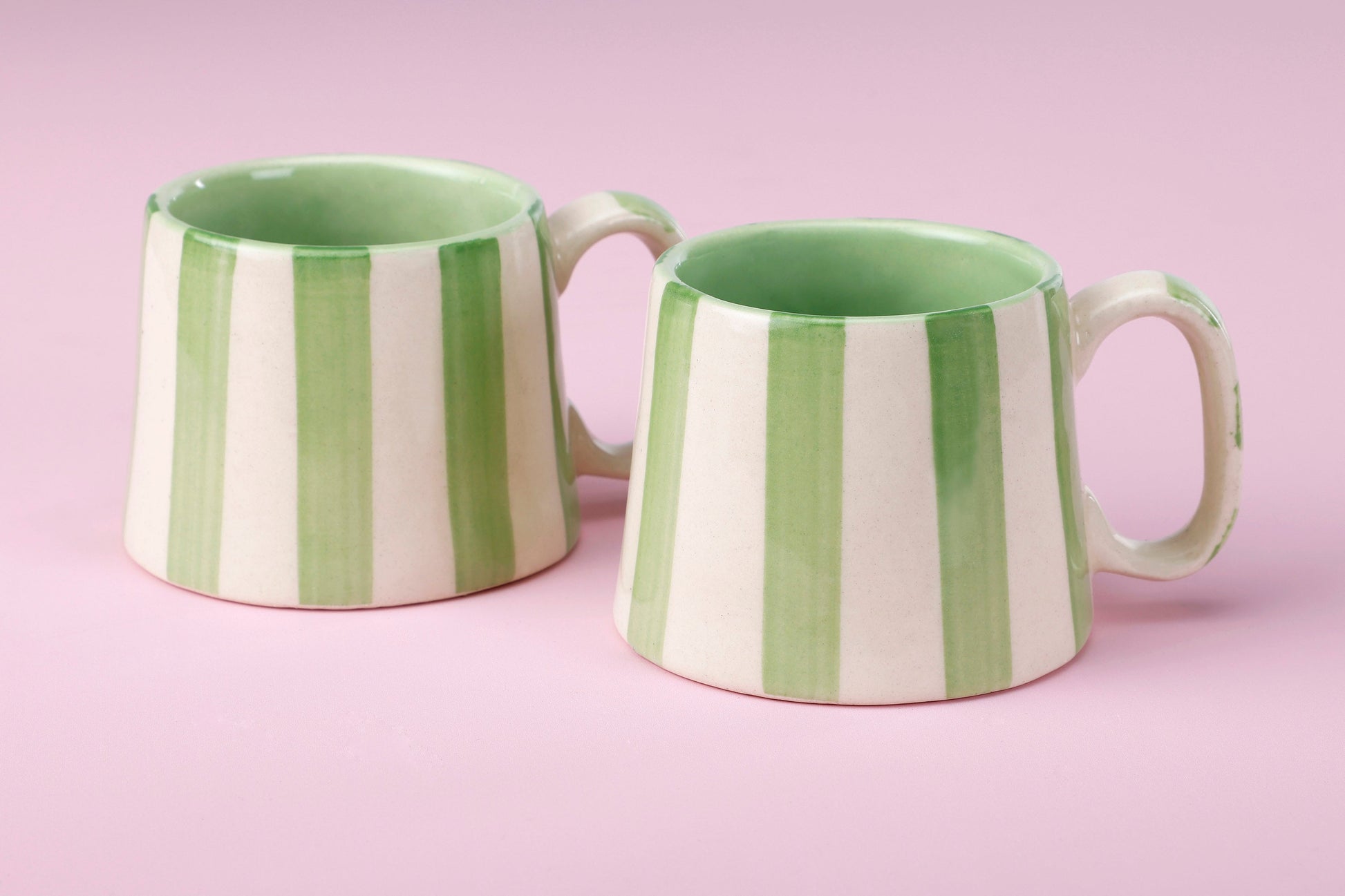 Ceramic Green Stripe Coffee cup - 3.5 x 2.5 Inches ( Set of 2 )