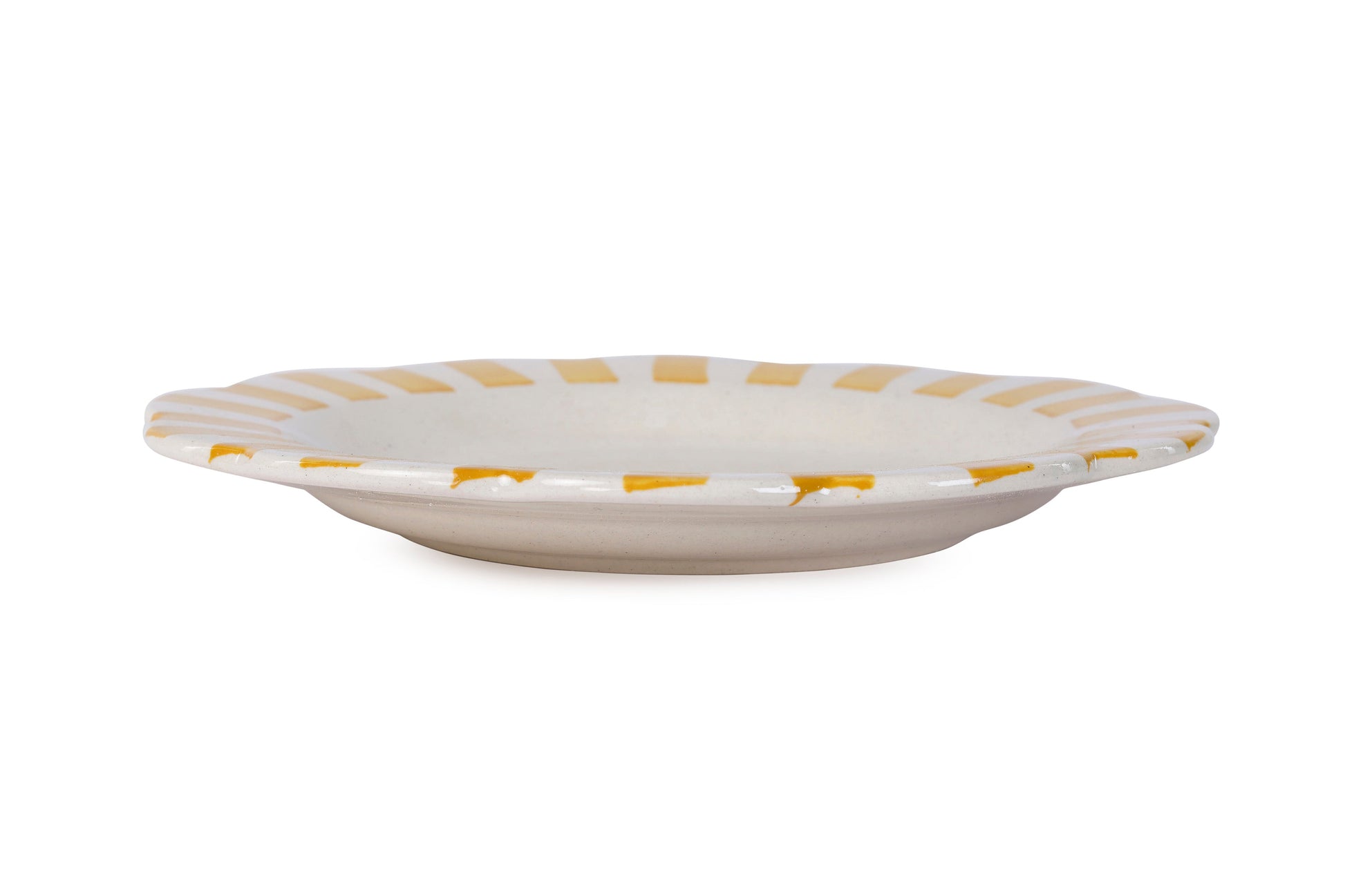Ceramic Stripe Dinner Plate, Yellow - 10 x 10 x 1.25 Inches ( Set of 4 )