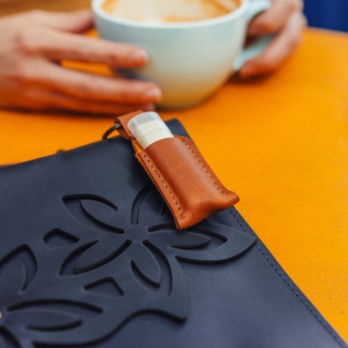 Keep your chapstick accessible with our simple leather chapstick holder, ready to clip to your keys, your backpack or your bag!