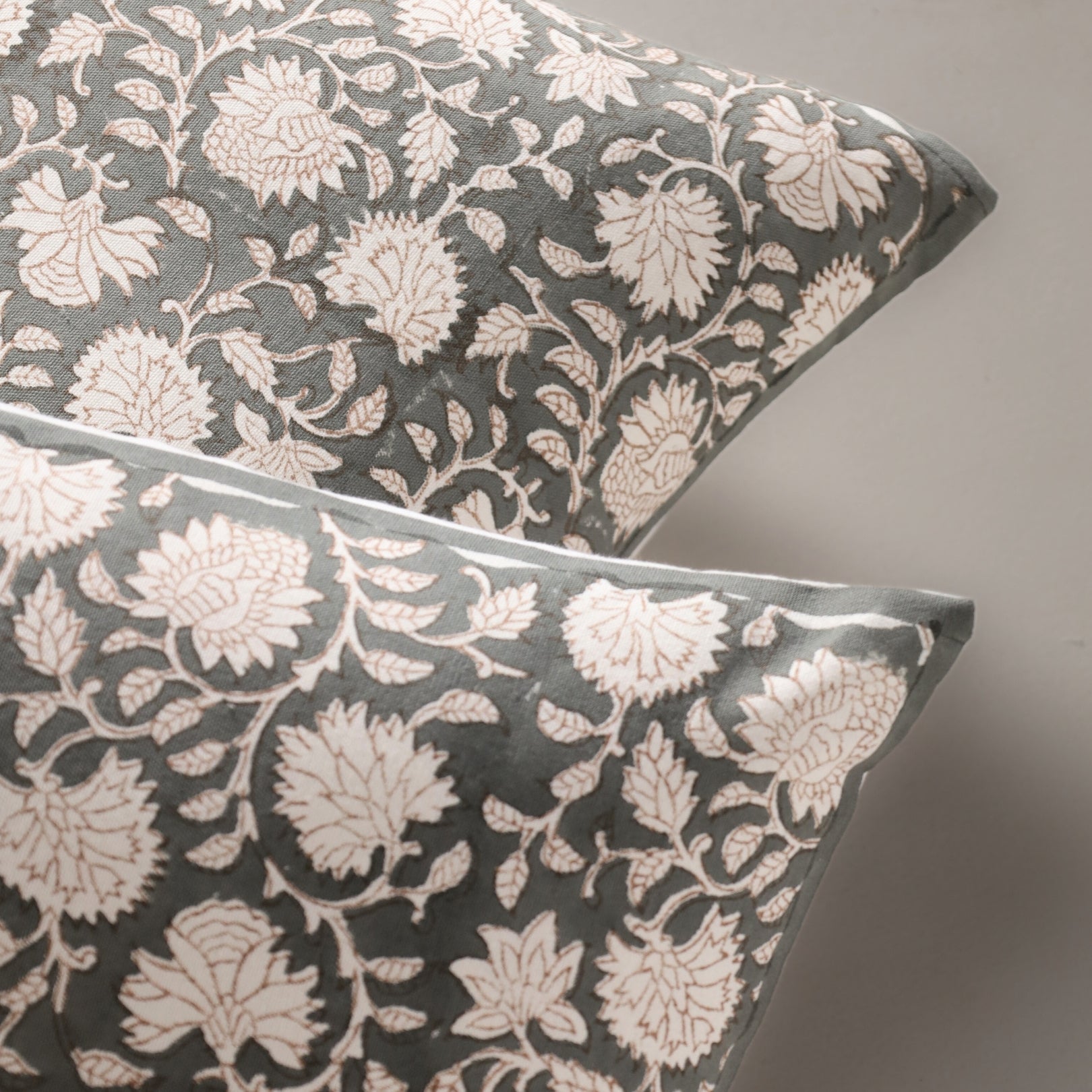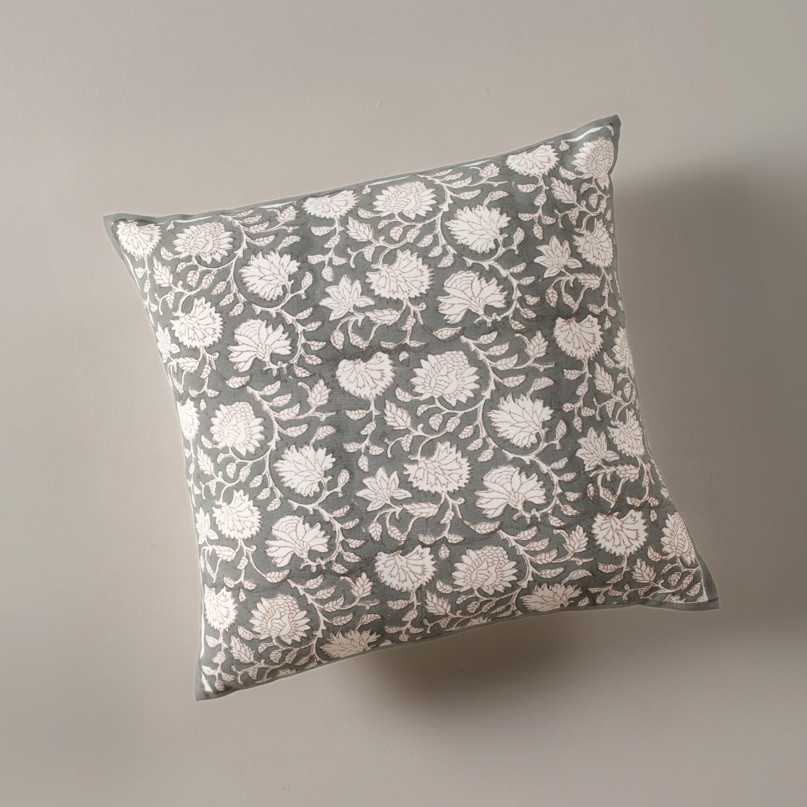 Charcoal & Off-White Blockprint Pillow Cover (18" x 18")