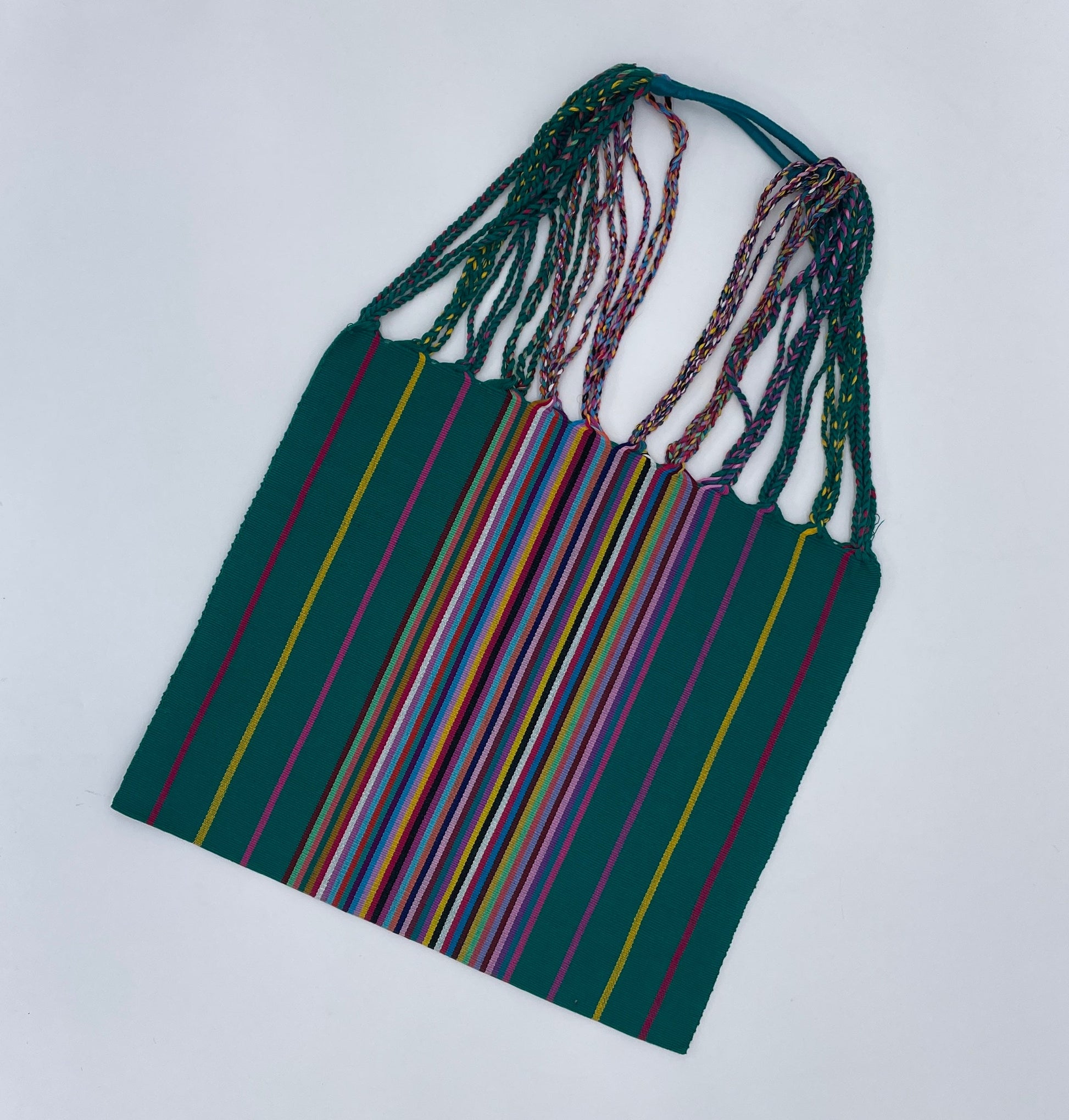 These versatile totes are handwoven by artisans in Chiapas, Mexico, on a backstrap loom. Perfect for the farmer's market, a day at the pool or beach, or as an everyday purse! Each bag has vibrant stripes of color which carry on to the straps which are then intertwined with the base color of the bag. The tops of the straps are double wrapped for durability and comfort. Hand wash or dry clean recommended