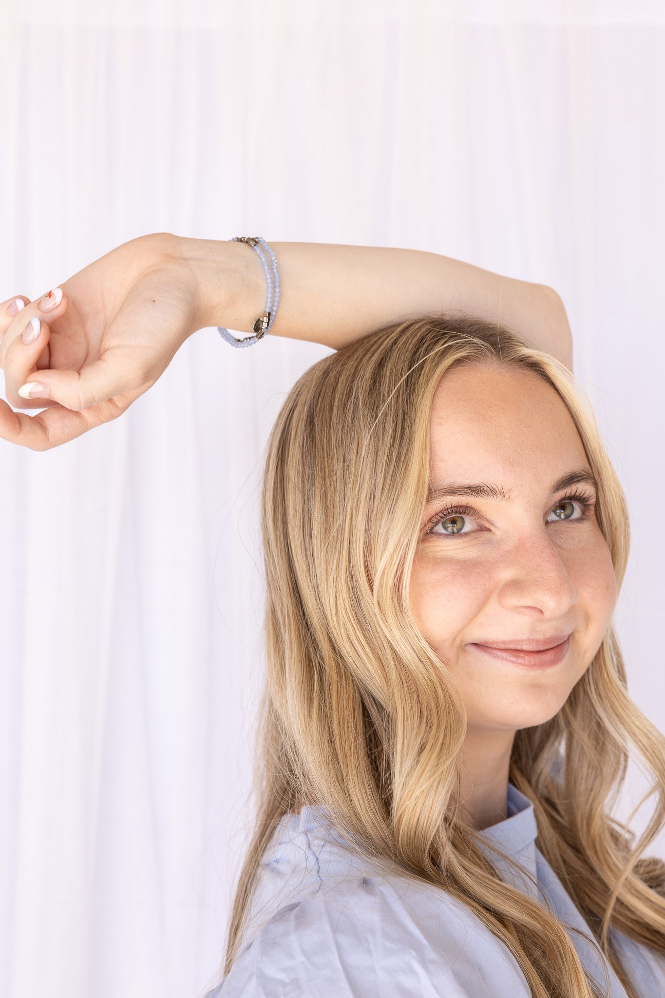 - Features High Quality Stainless Steel Beads and Powder Blue Beads