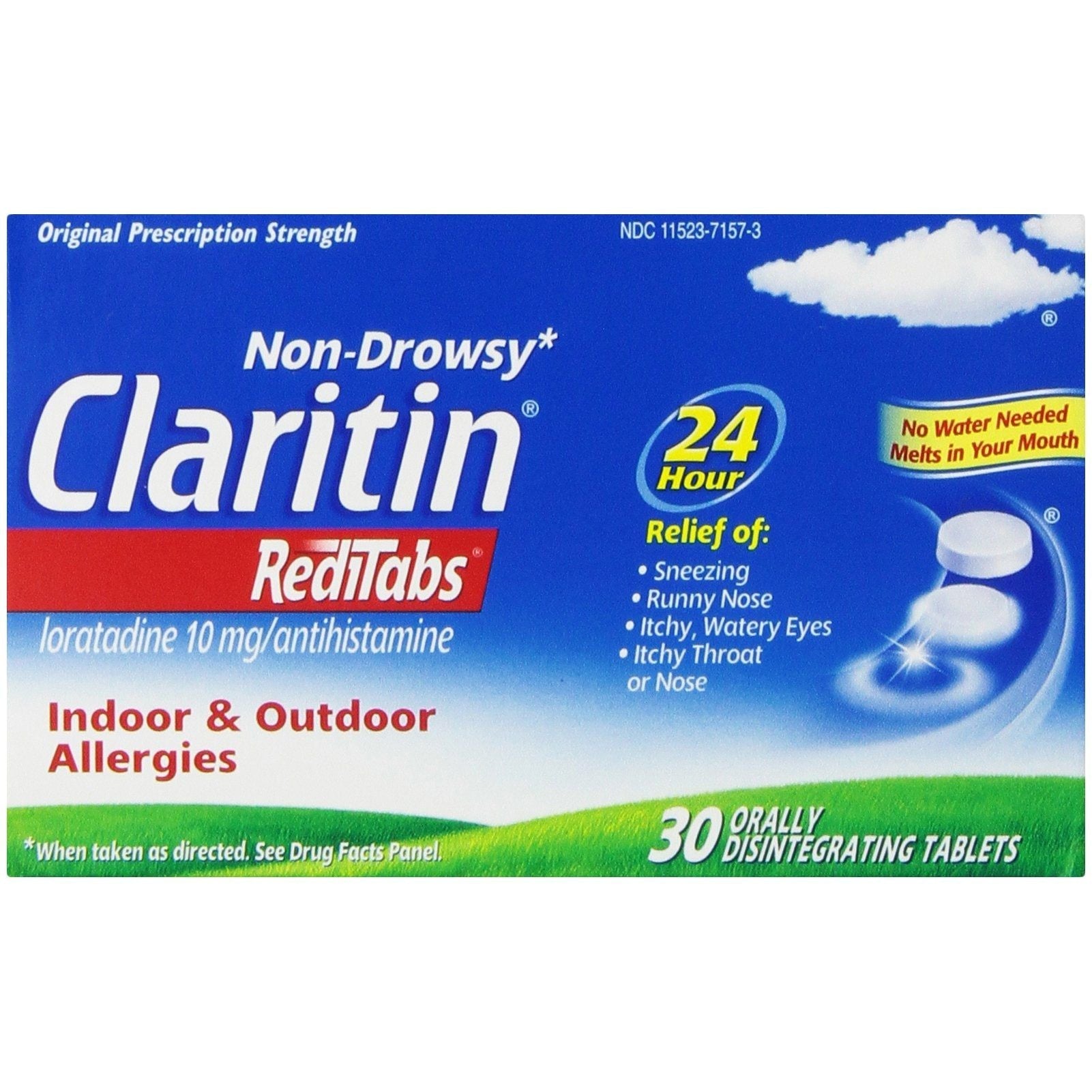 Claritin RediTabs provide powerful, 24-hour, non-drowsy relief of your worst indoor and outdoor allergy symptoms, including sneezing, runny nose, itchy/watery eyes and itchy throat/nose. Claritin provides relief of symptoms that can be triggered by over 200 different allergens. Claritin is an antihistamine, so it hinders the cascade triggered by allergens. Easy-to-take because the orally dissolvable tablet melts in mouth and requires no water. For adults and children ages 6+. One tablet contains 10 mg of loratadine. HSA/FSA EligibleRestrictions apply; contact your insurance provider about plan allowances and requirements.