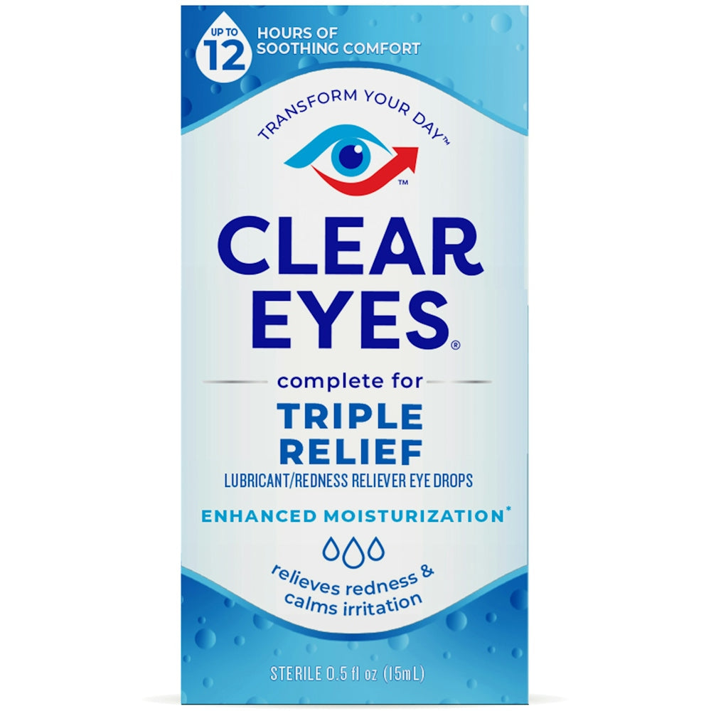 Clear Eyes Lubricant/Redness Reliever Eye Drops - Triple Action Relief, 0.5 Fl Oz