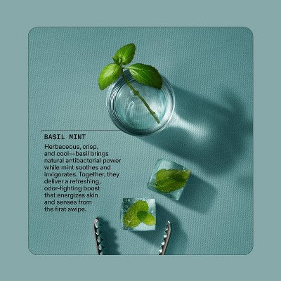 Fresh basil and cooling mint combine for a clean, herbal scent that energizes and refreshes your entire body. Stay dry, feel revived.
