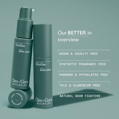 cleo+coco. Body and Hair Antiperspirants and Deodorant Powder Basil Mint 0.88oz - New