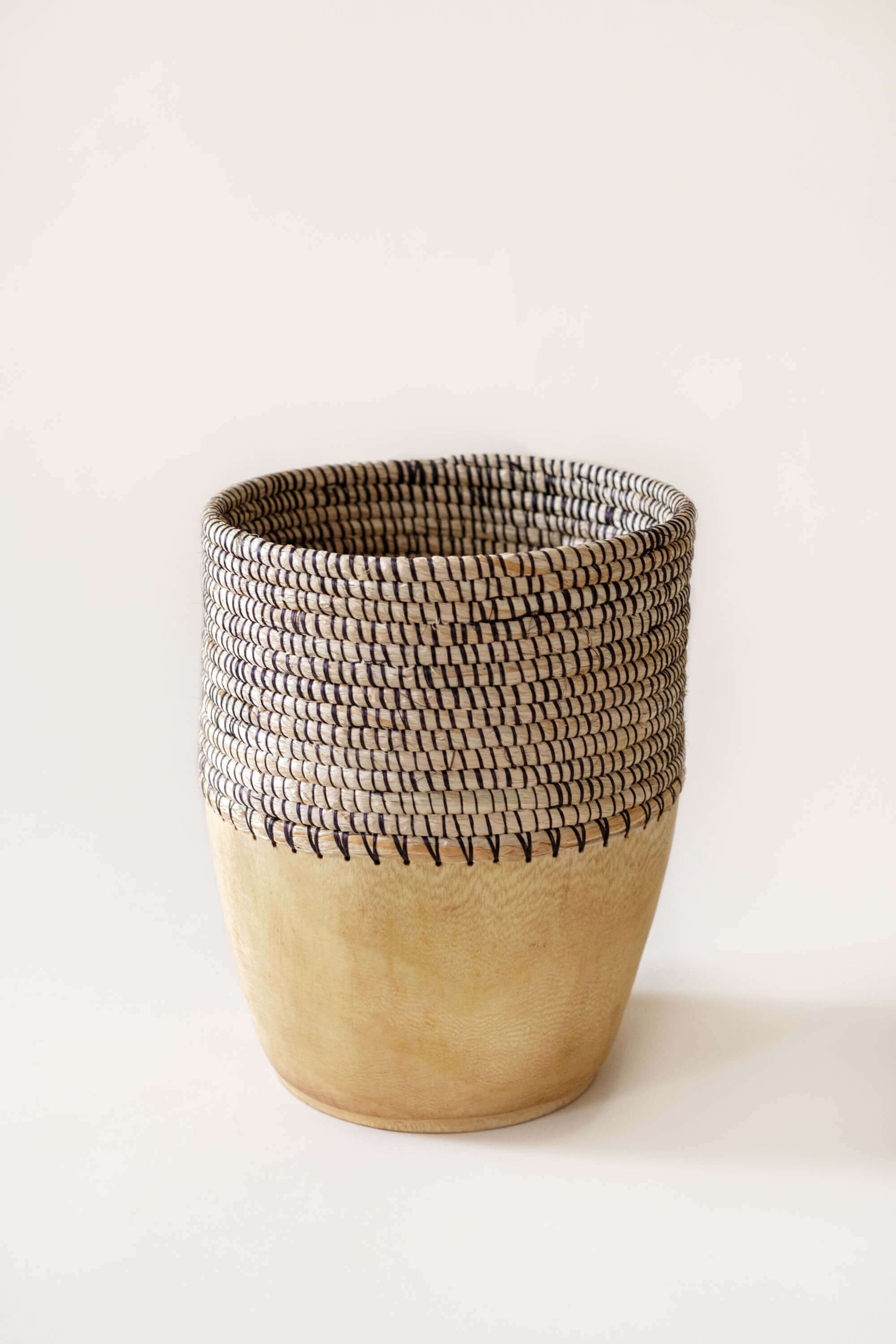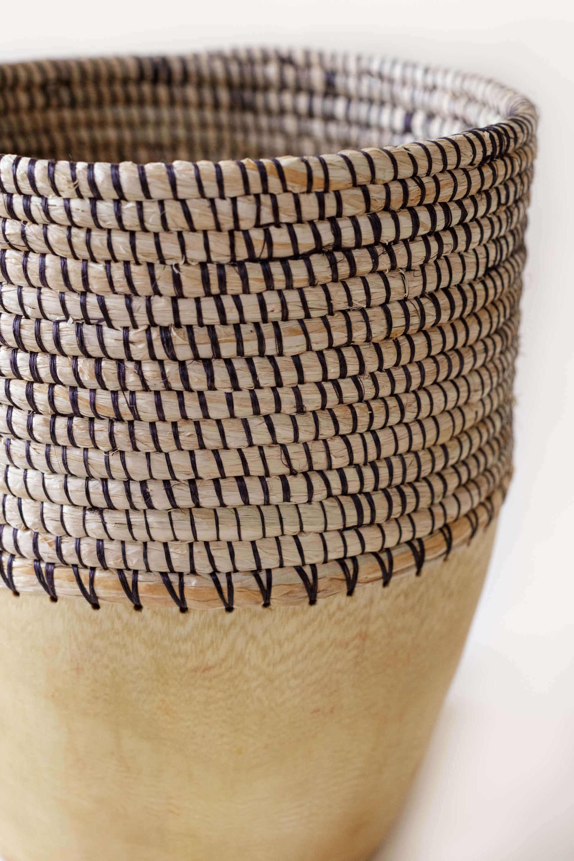The Copabu Wooden + Woven Vessel elevates a space no matter the contents it is holding.