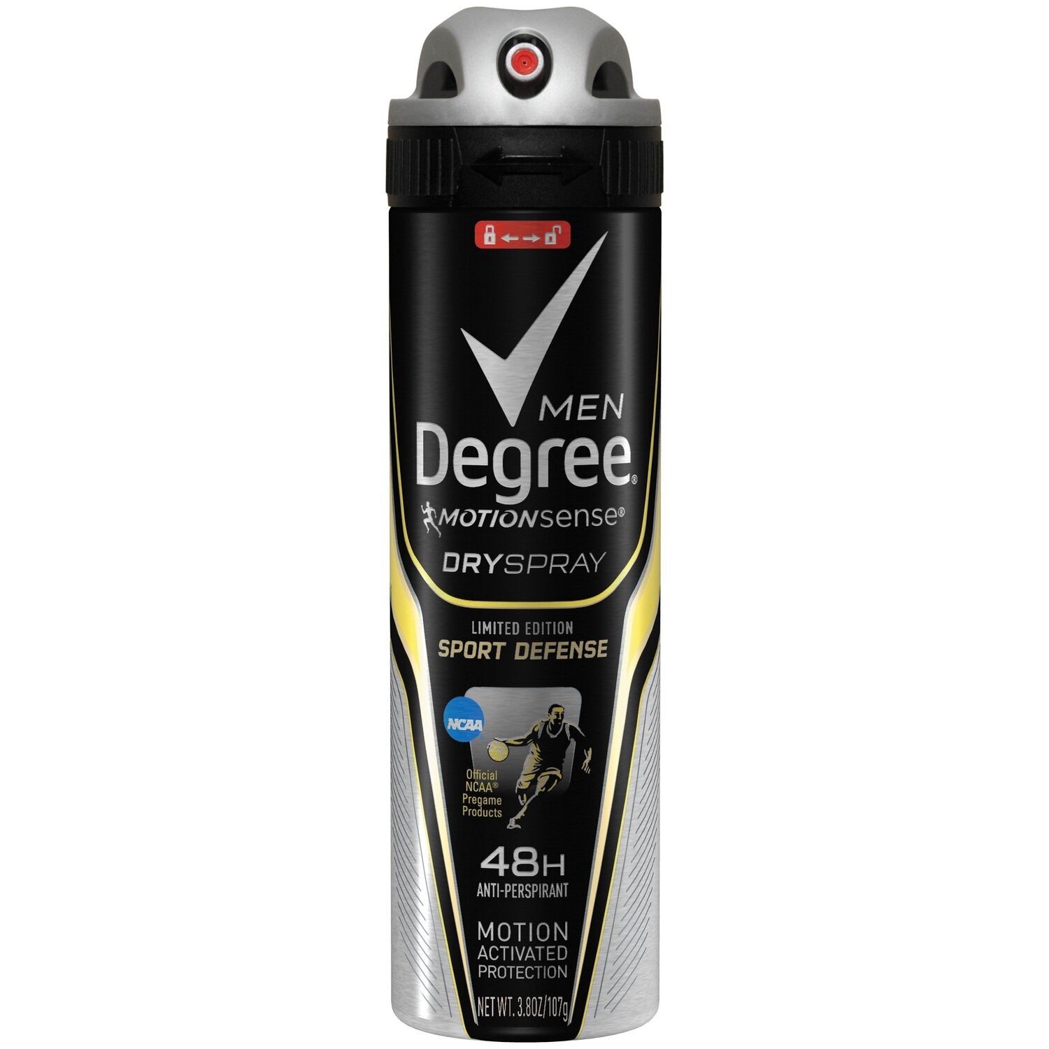 Degree Sports Defense dry spray deodorant with MotionSense (TM) goes on instantly dry. This men's deodorant features a rustic scent for long-lasting protection.