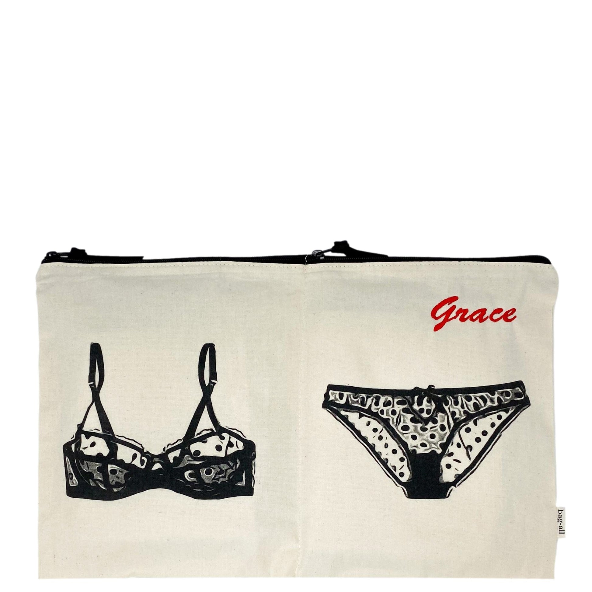 This lingerie pouch is the most stylish way to carry your underwear, lingerie, or even a swimsuit while you're traveling. This chic and stylish Lingerie Travel Bag features two compartments, one for panties and one for bras, making organizing easy and cute. Made of high quality natural cotton fabric in Cream, this bag keeps your undergarments neat, organized and clean, whether you are at home or travelling!