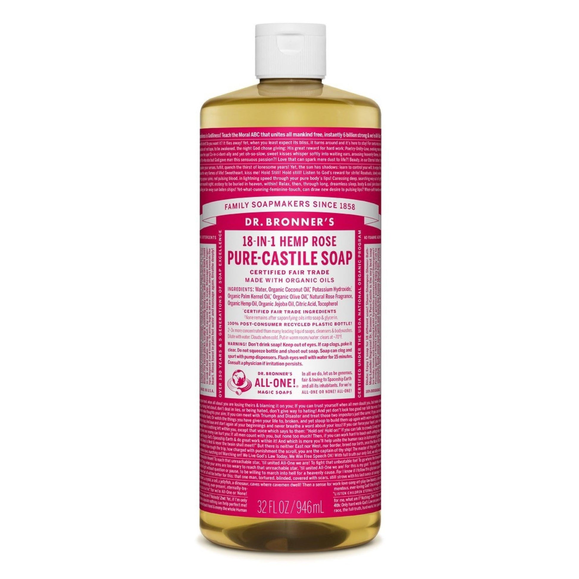 Dr. Bronner's Organic 18-in-1 Hemp Pure Castile Liquid Soap Rose 8 Fl. Oz