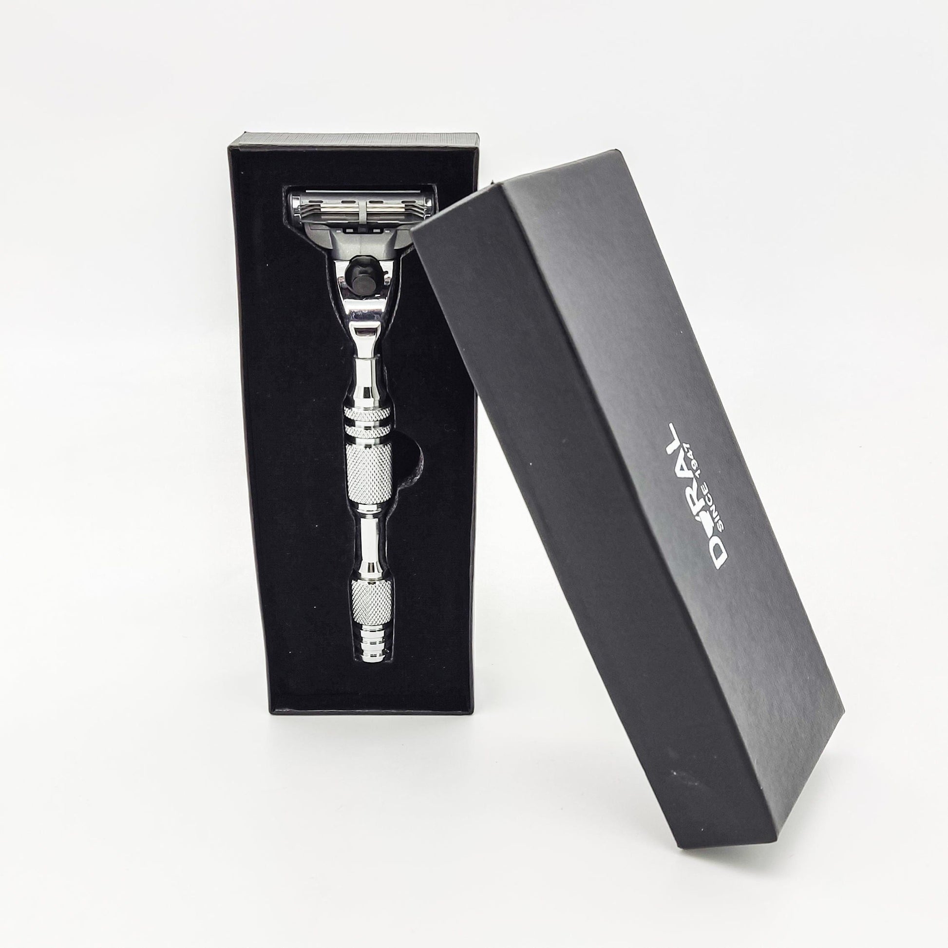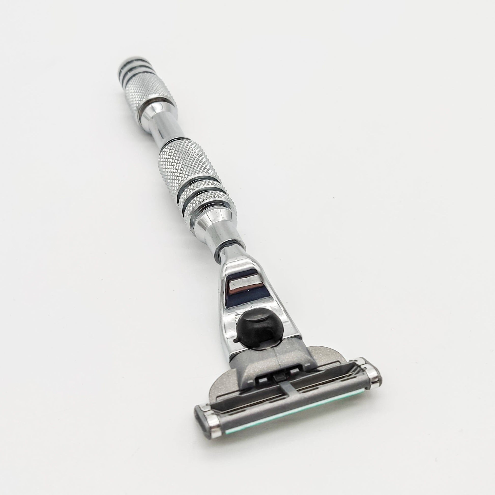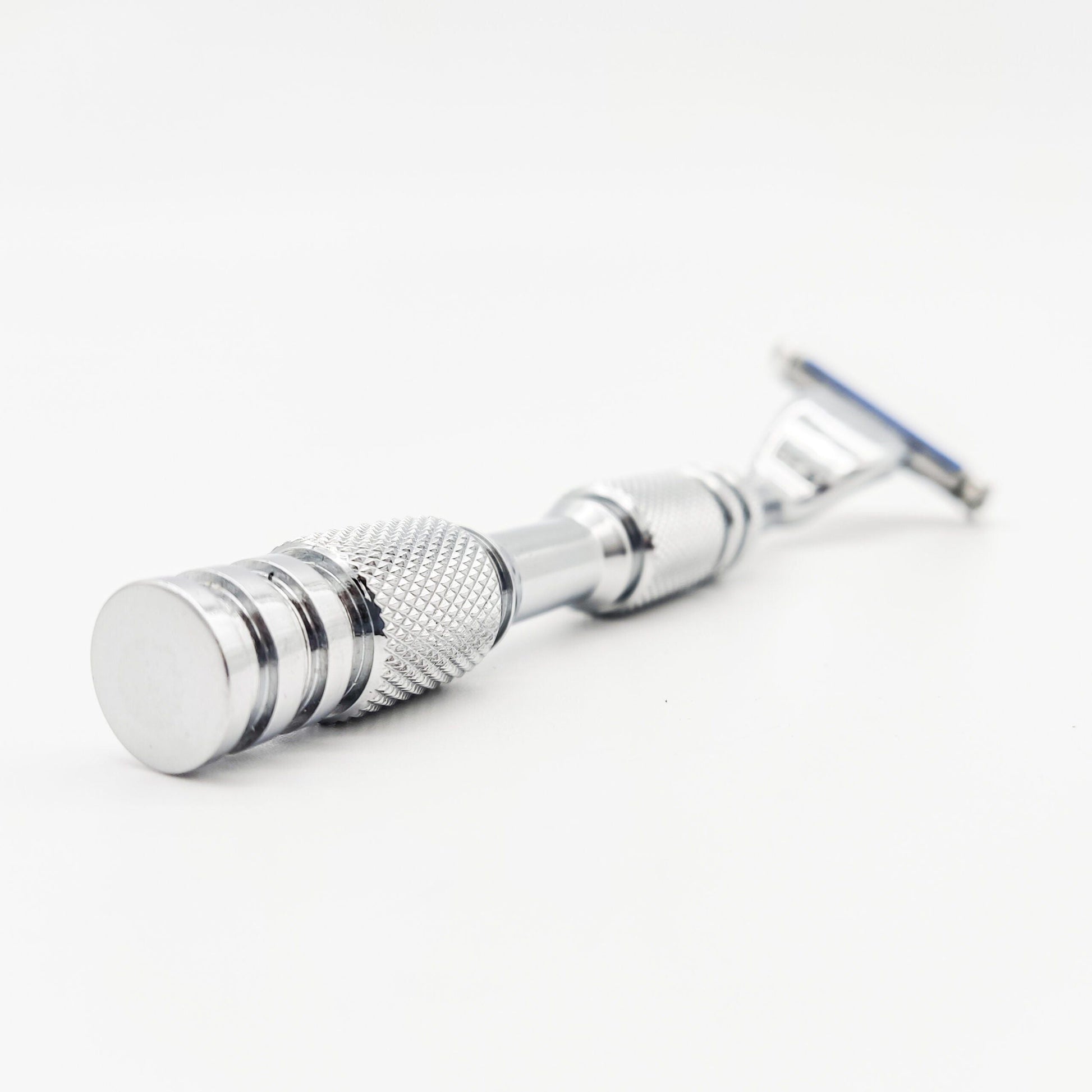Properly weighted and balanced handle helps reduce pressure placed on the skin during shaving.