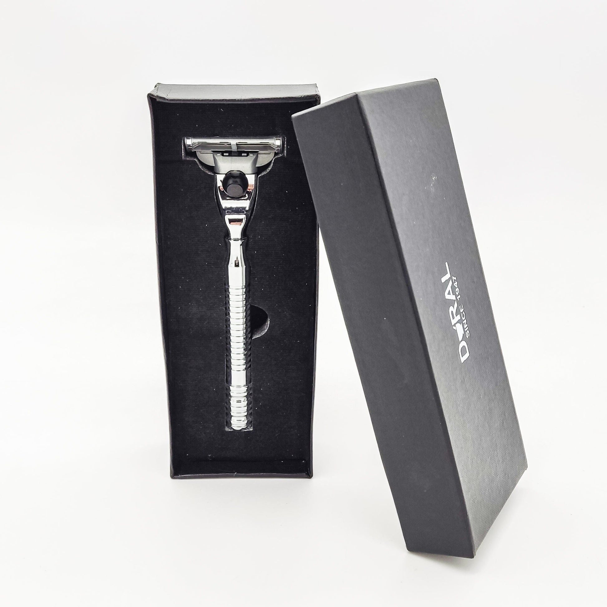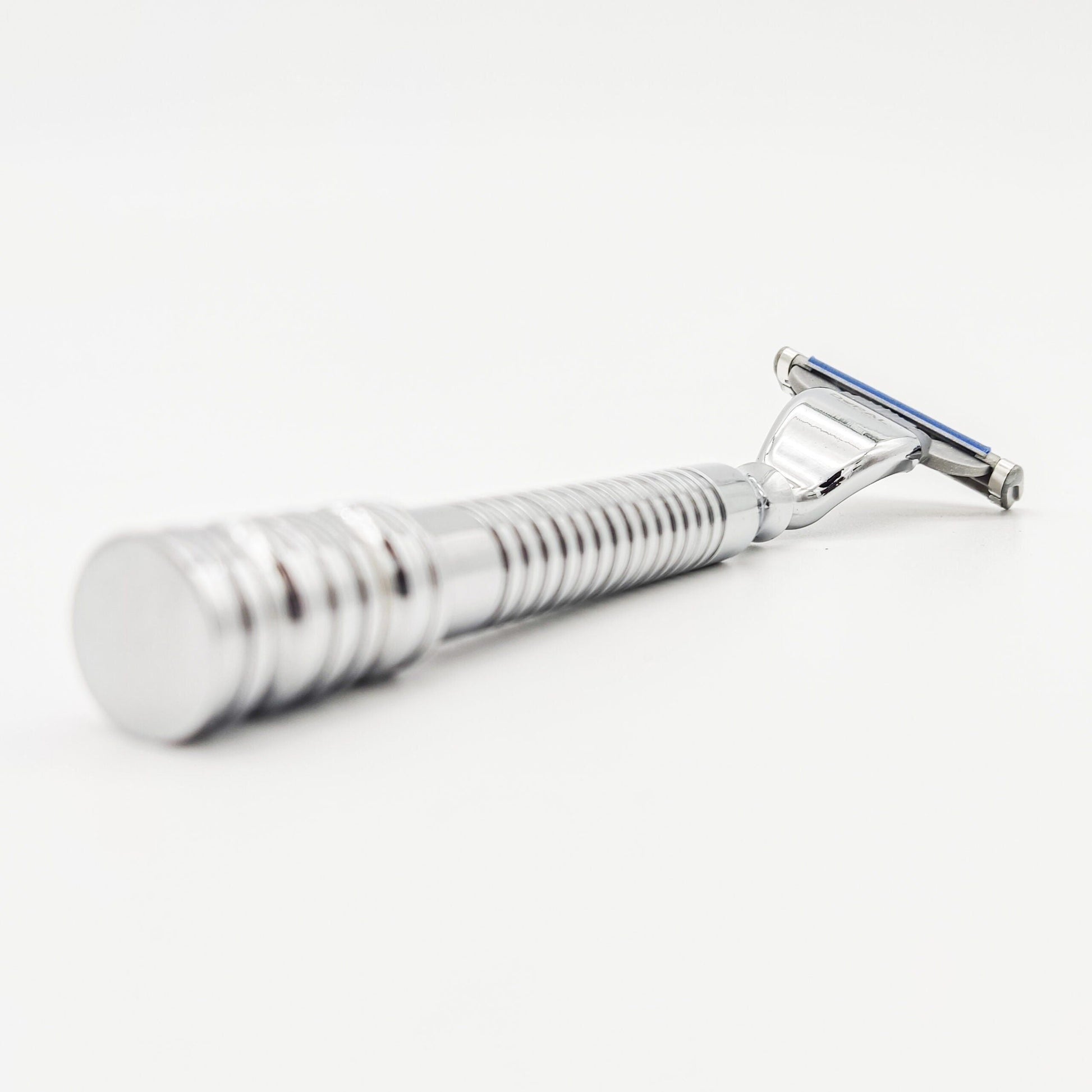 Properly weighted and balanced handle helps reduce pressure placed on the skin during shaving.