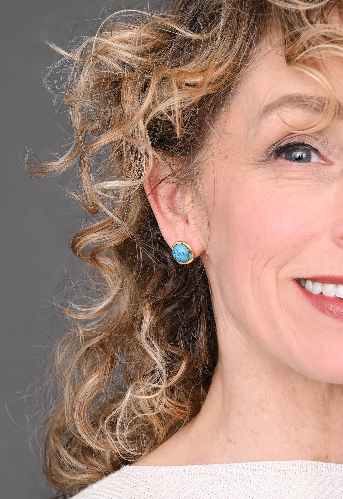 Versatile, bold, and effortlessly elegant—the Eclipse Turquoise Ear Jackets offer two stunning ways to shine. Wear them as vibrant turquoise studs for a fresh pop of color or add the sleek black charm for a statement drop look. Crafted with 18K plated gold, these earrings blend timeless beauty with modern versatility. Whether you're dressing up or keeping it casual, the Eclipse Turquoise Ear Jackets are the perfect finishing touch. Every purchase helps survivors build a brighter future—because true beauty is found in transformation. Box size and color may vary. Materials: 18k gold plated brass with turquoise earrings Hypoallergenic; lead and cadmium free with nickel content less than 100 ppm. Size: 1.38 inches