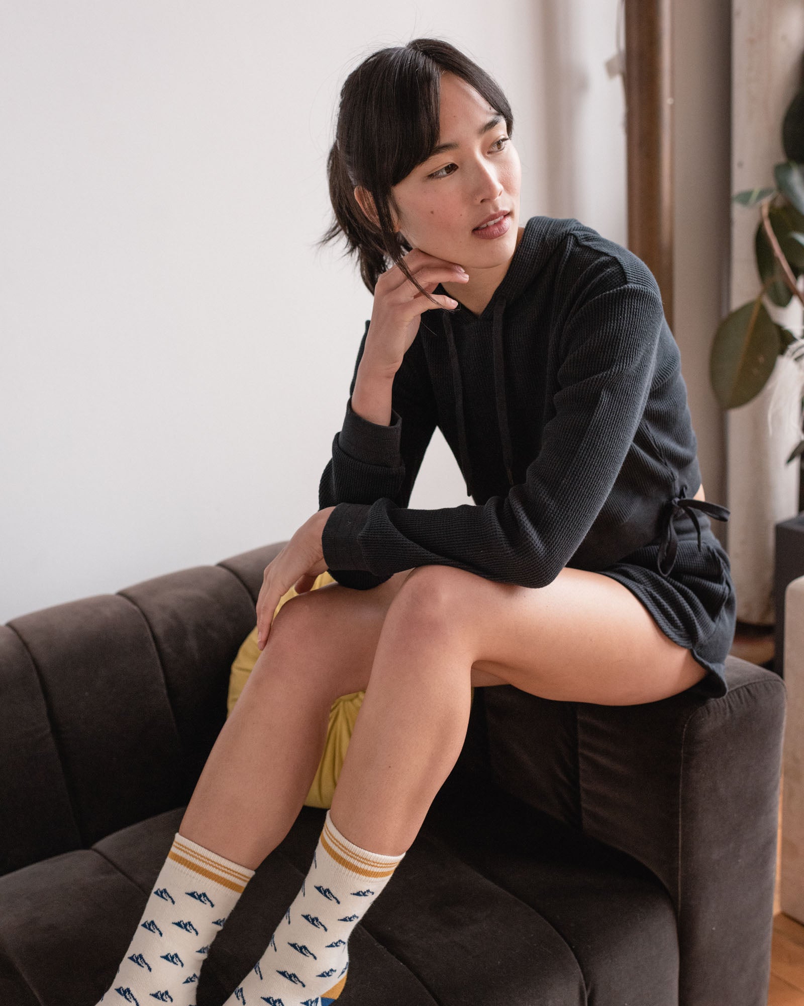 Meet our very first loungewear: a waffle-knit thermal set made from our supersoft EcoKnit™ fabric. The hoodie is perfectly cropped to pair just as well with high-waisted jeans as it does with the matching shorts.