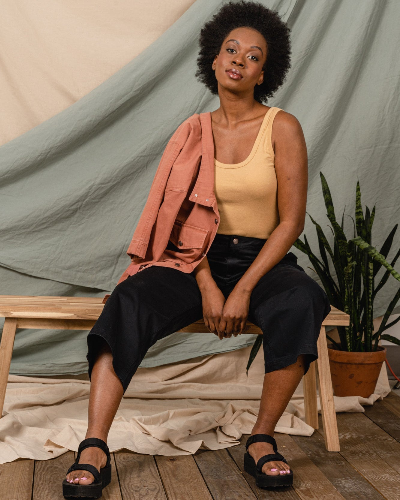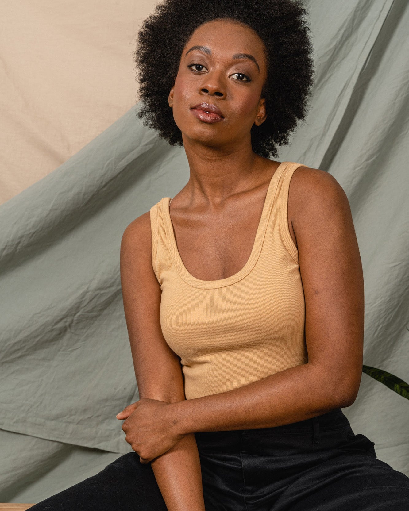 A summer staple for ultimate layerability: this scoop neckline tank has a body-hugging fit made from soft organic and recycled materials that feel great against your skin. Made to tuck perfectly into jeans or lay the foundation to an outfit.