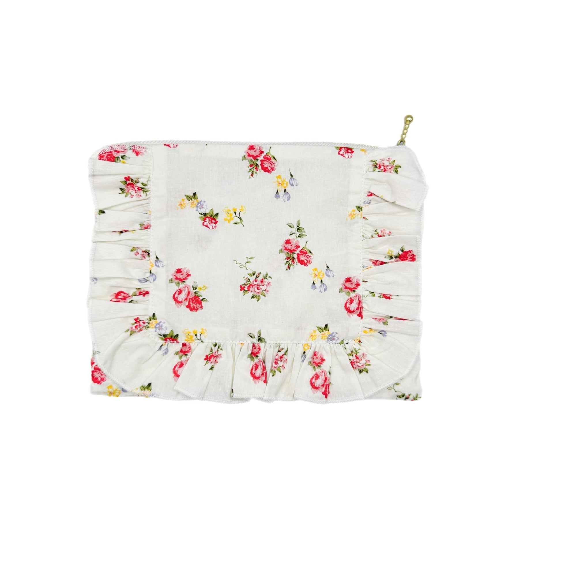 English Rose Posy|Timeless Floral Ruffle Zipper Pouch