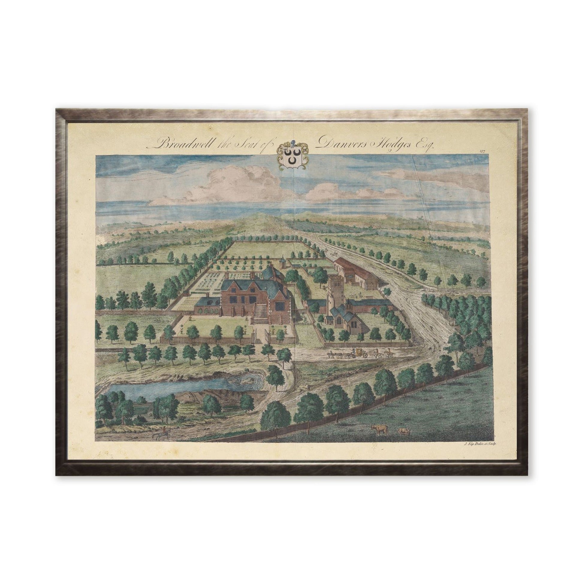 This vintage-inspired print, framed in a silver wooden frame, features an antique, painted estate plan. Sized at 18 inches by 24 inches, this made in the USA frame makes for a beautiful addition to any wall.