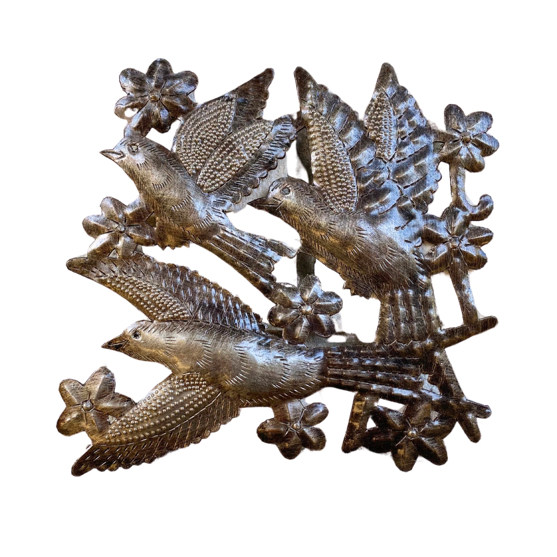A folk art that dates back to the mid-20th century, Haiti metal art today is the art of‚ recycling and transforming discarded steel oil drums into ornate metal artwork. As‚ handmade Haitian‚ metal‚ art, there will be slight variations from one piece to another, adding to the unique‚ character and value of each piece of metal art.