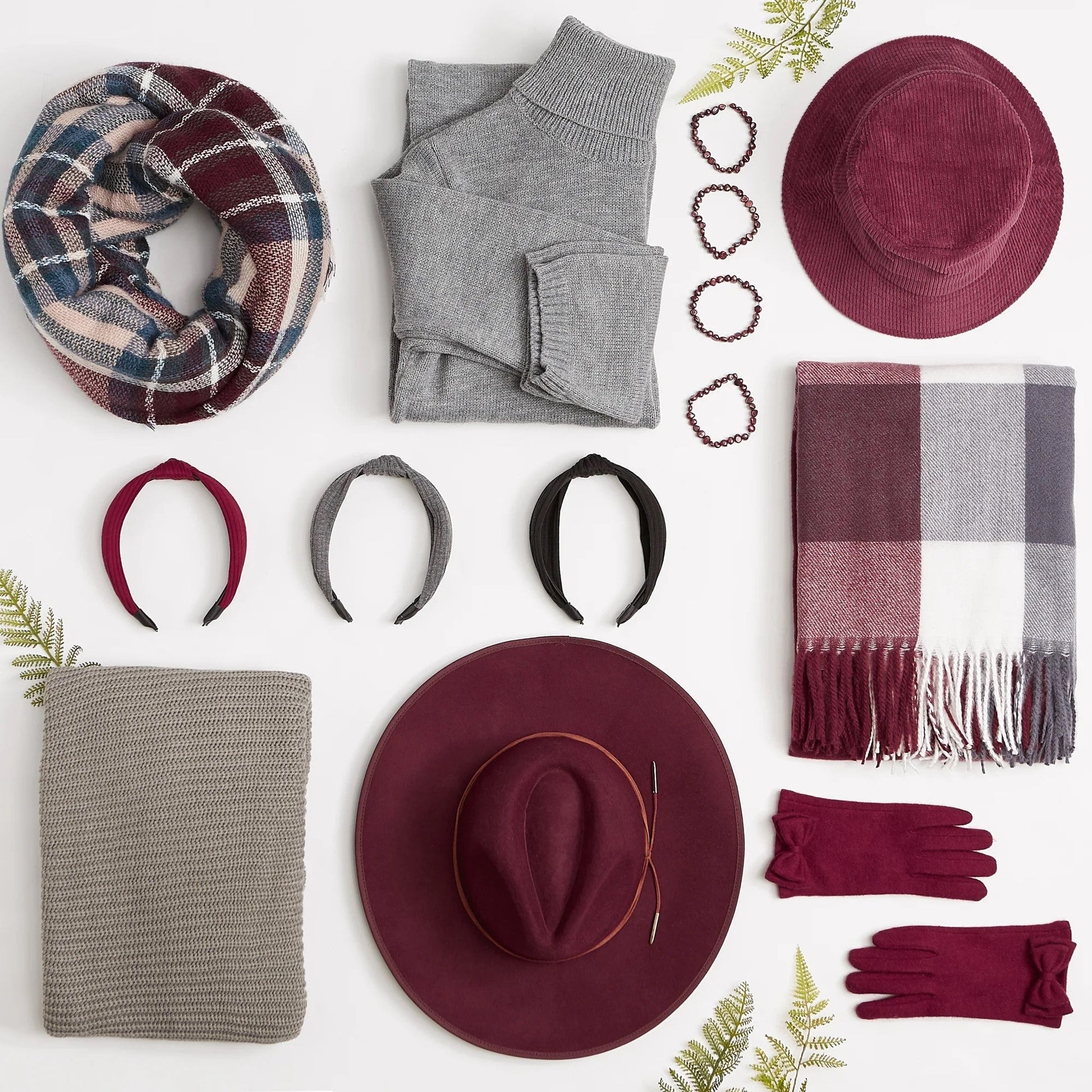 Snuggle up in style with Fringe Plaid Blanket Scarf in Burgundy & Grey!
