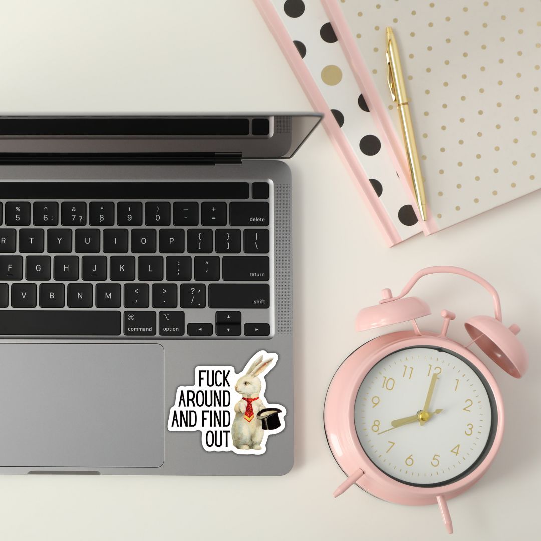 Fuck Around And Find Out Vintage Rabbit Illustration Vinyl Die Cut Sticker