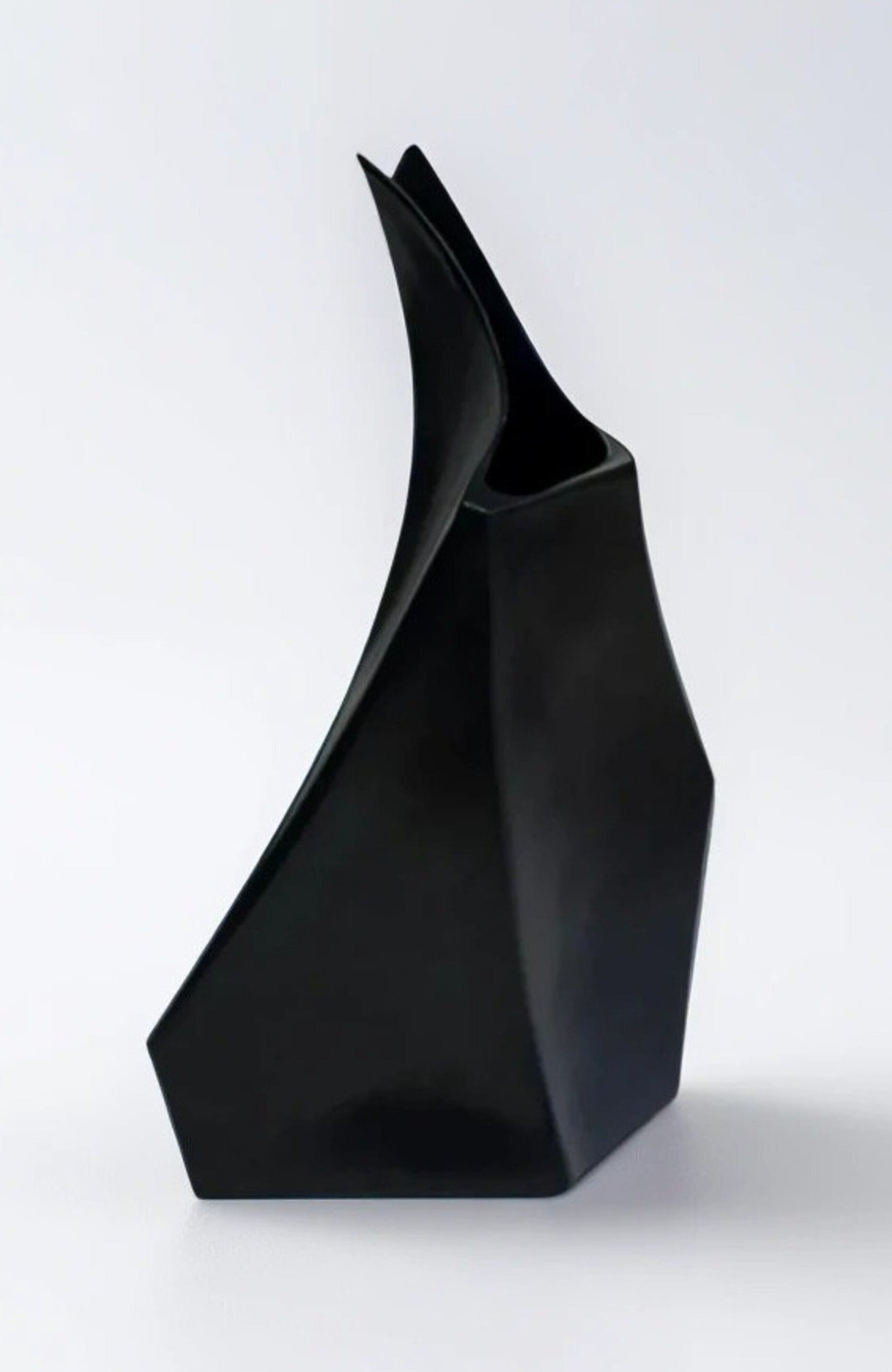 Black Geo Tall The Geo-Vibe Black Ceramic Vase brings sculptural impact with its bold interplay of geometry and elegance. Its angular silhouette flows into a fluid, organic opening. Finished in matte black, it adds a modern edge while showcasing refined craftsmanship. Style it solo or with other pieces in the set for a cohesive statement. Product Details Dimensions: 11” L x 7.5” W x 17” H Material: Ceramic Finish: Matte black Watertight: No Care: Clean gently with soft, dry cloth; use damp if needed (water only) Origin: Ethically and sustainably handcrafted in Portugal