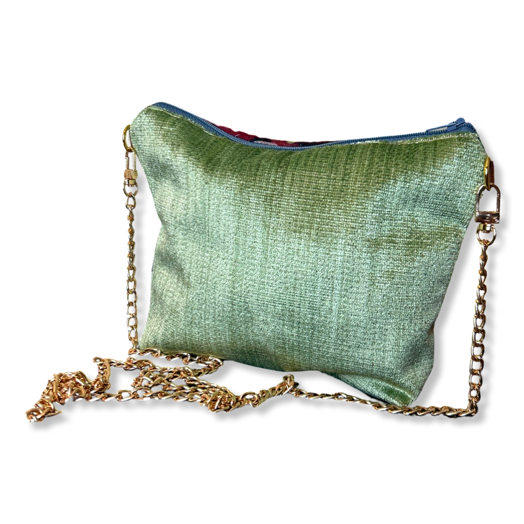 Reimagined from the world’s finest collection of vintage luxury scarves, our crossbody bag is the ultimate accessory for your on-the-go lifestyle.   Limited editions, perfectly sized to stash all your essentials in a zippered bag with a gold-tone removable crossbody chain.